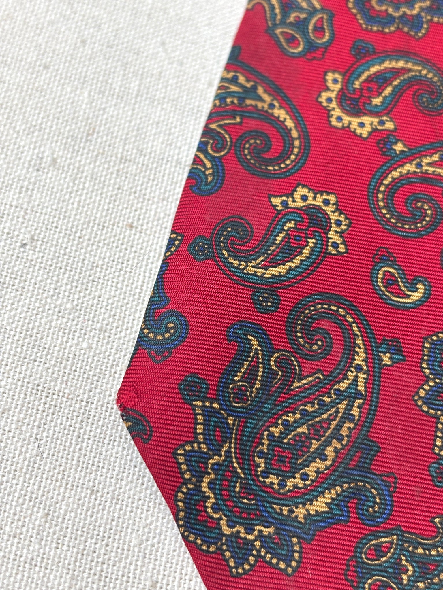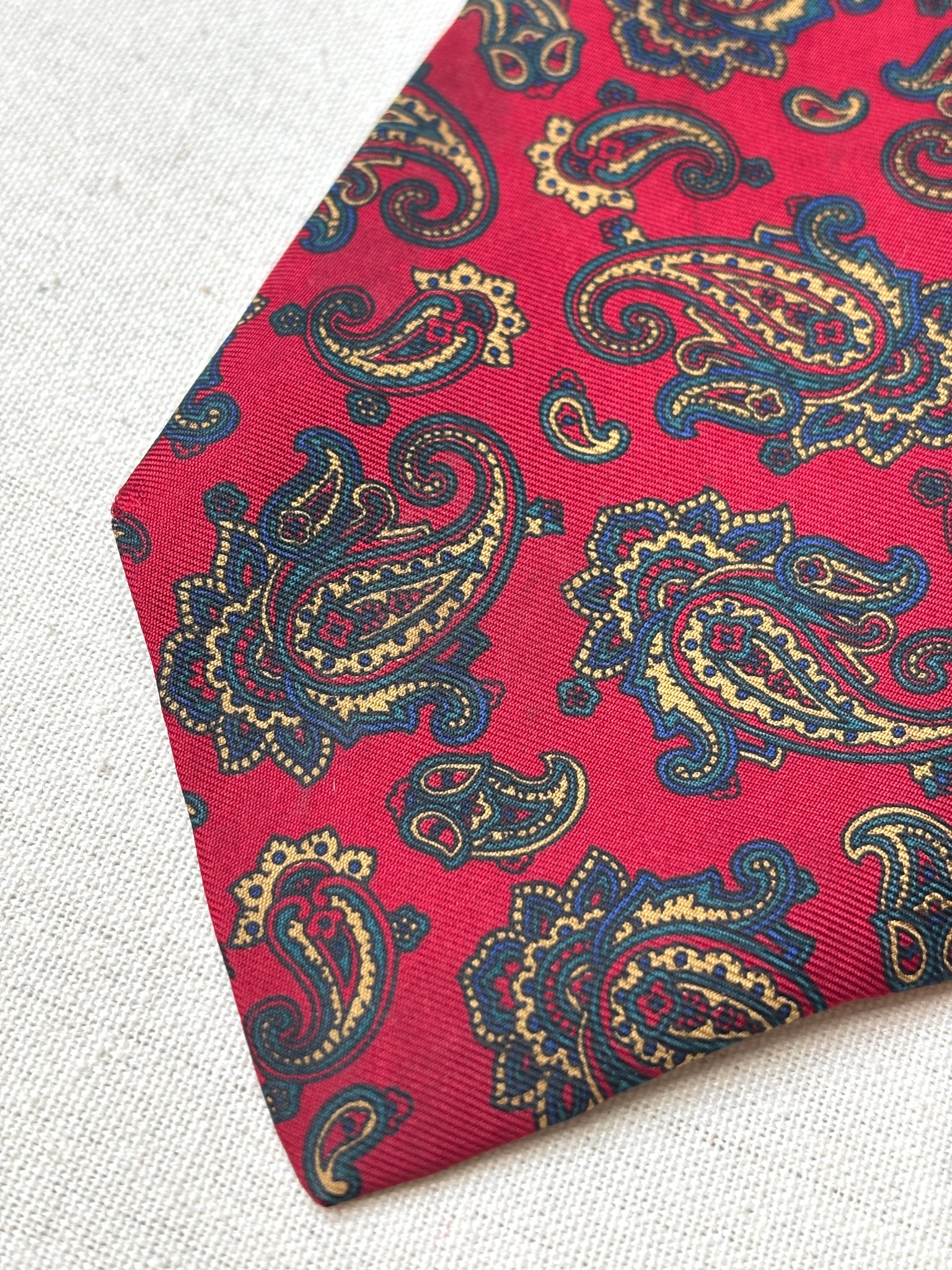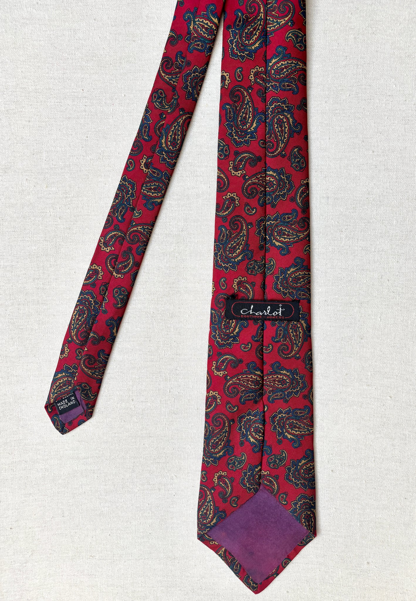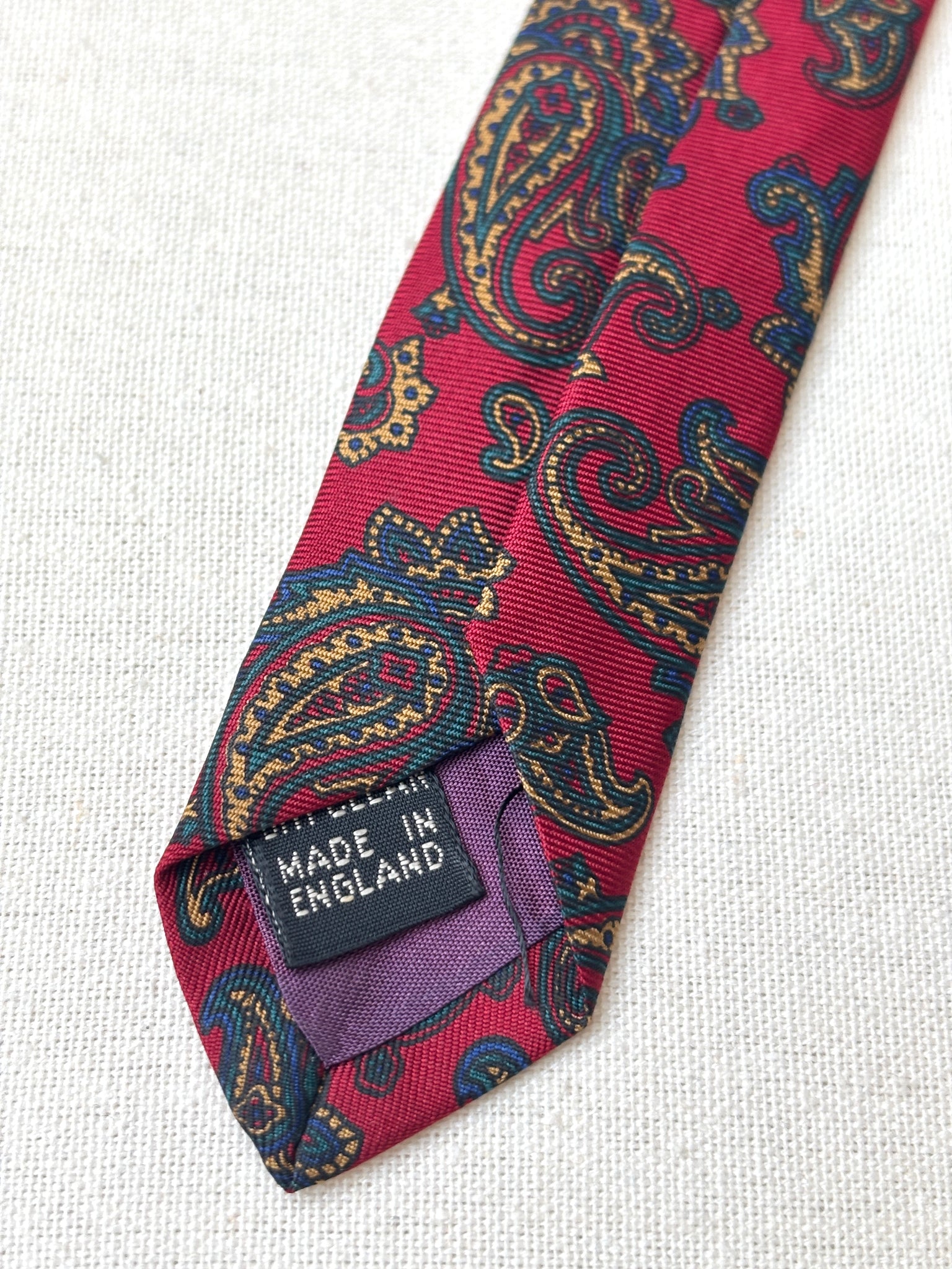2/ Jolie cravate rouge paisley vintage en soie maison, fabriquée en Angleterre.