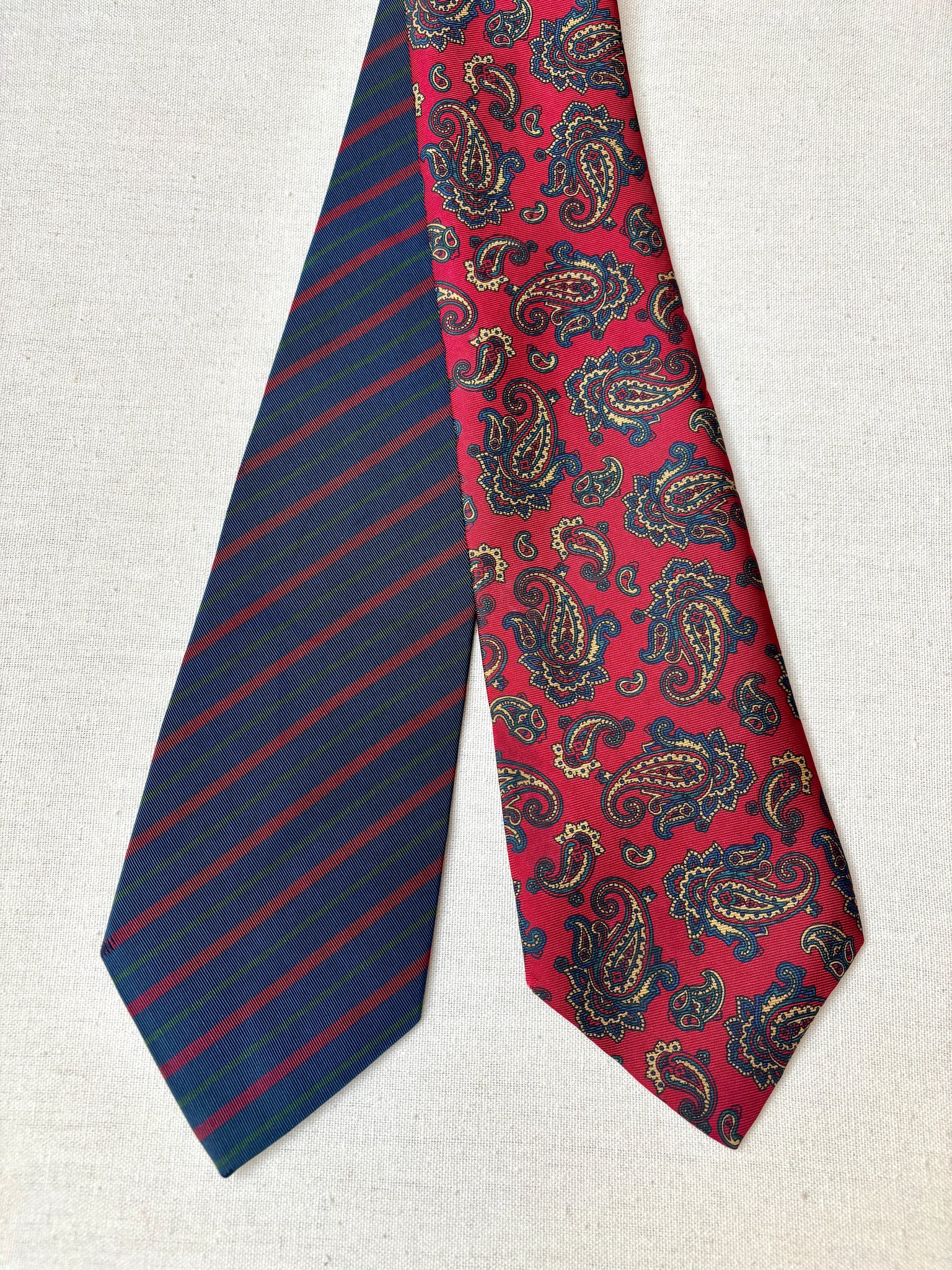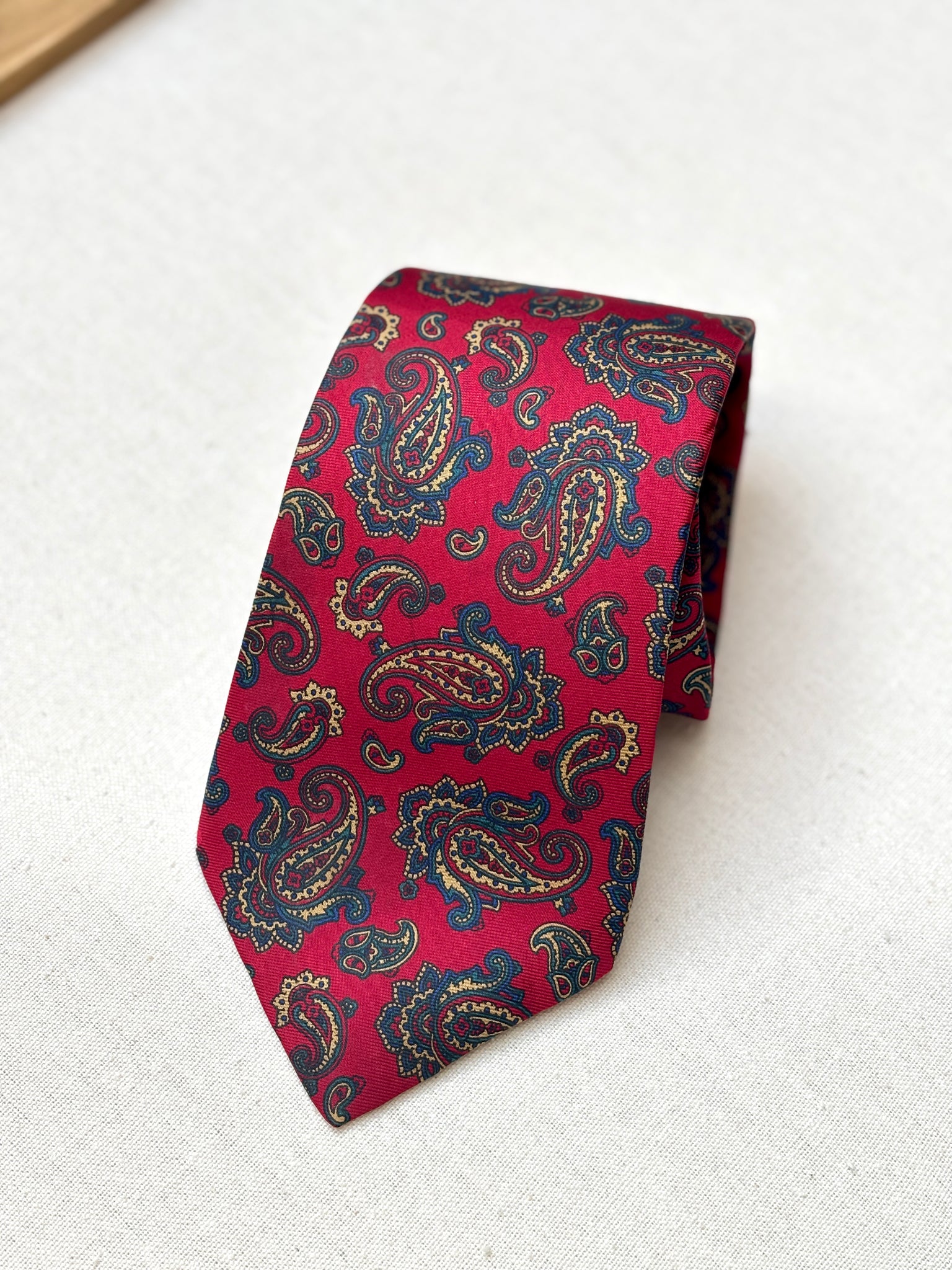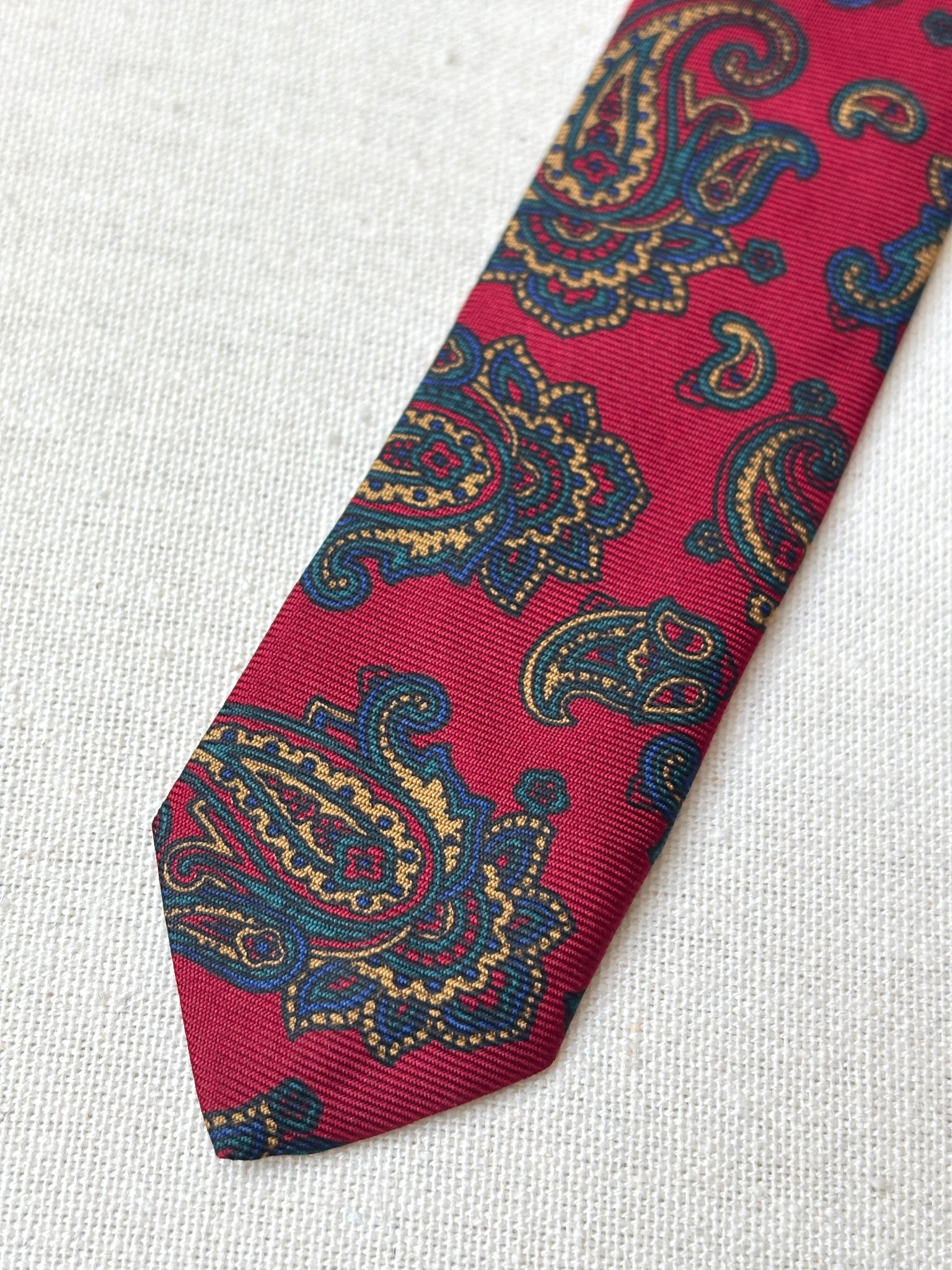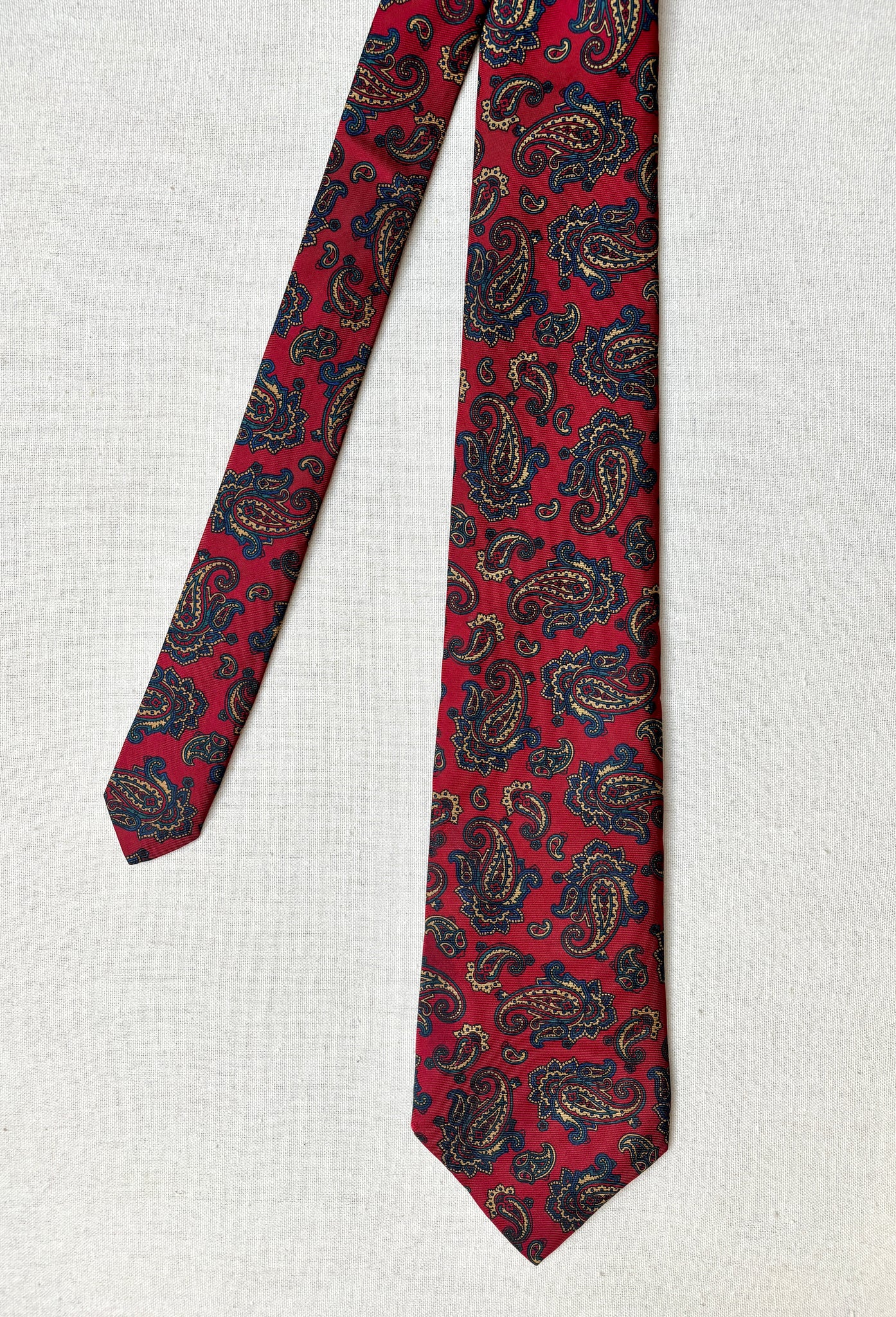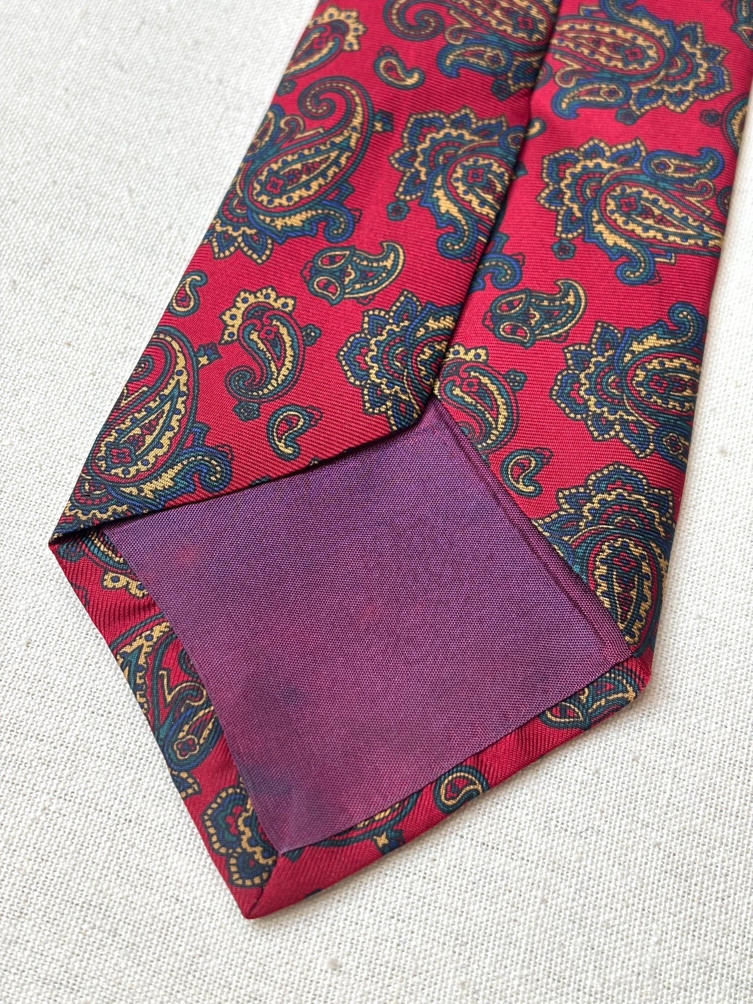 2/ Jolie cravate rouge paisley vintage en soie maison, fabriquée en Angleterre.