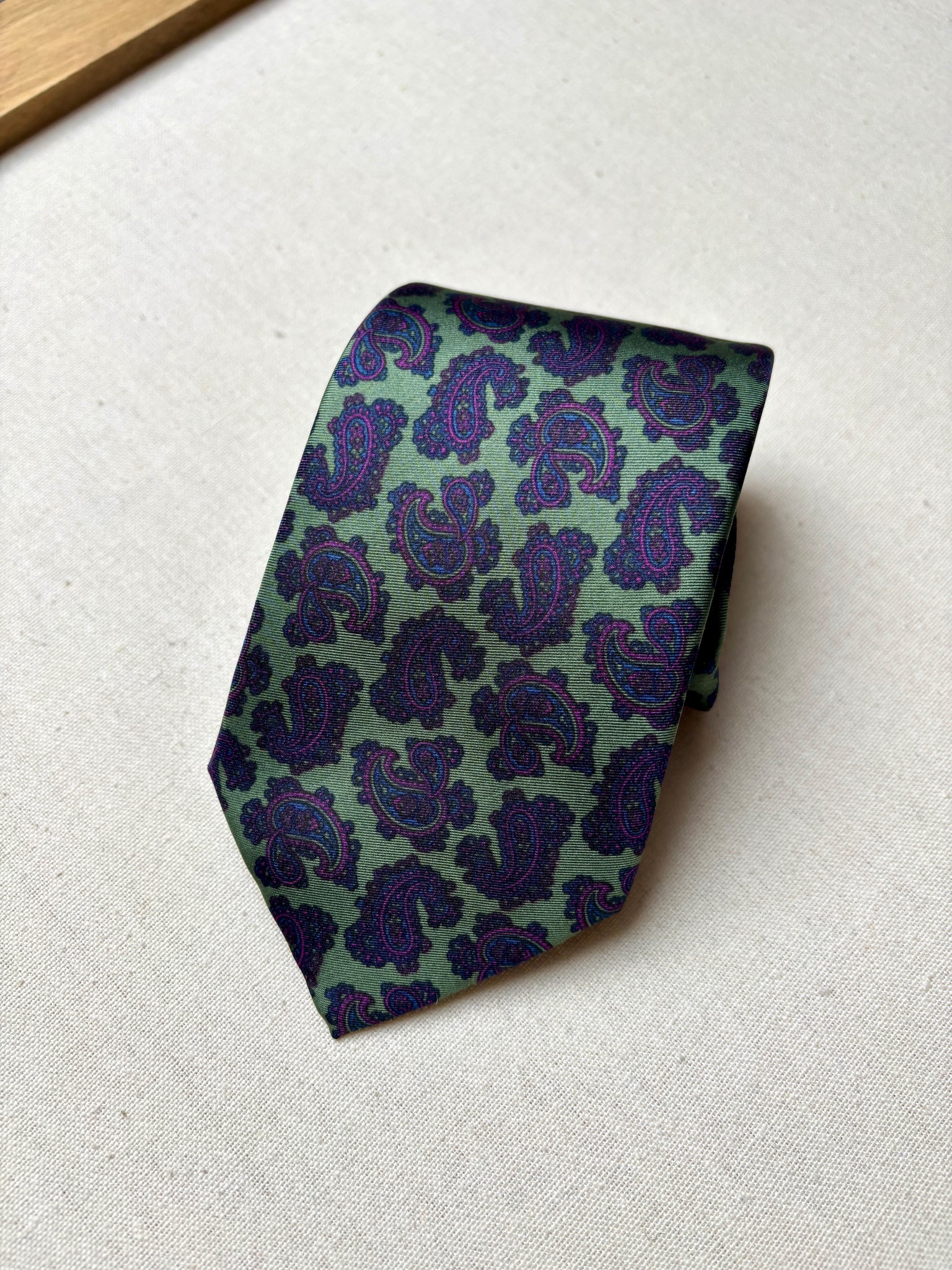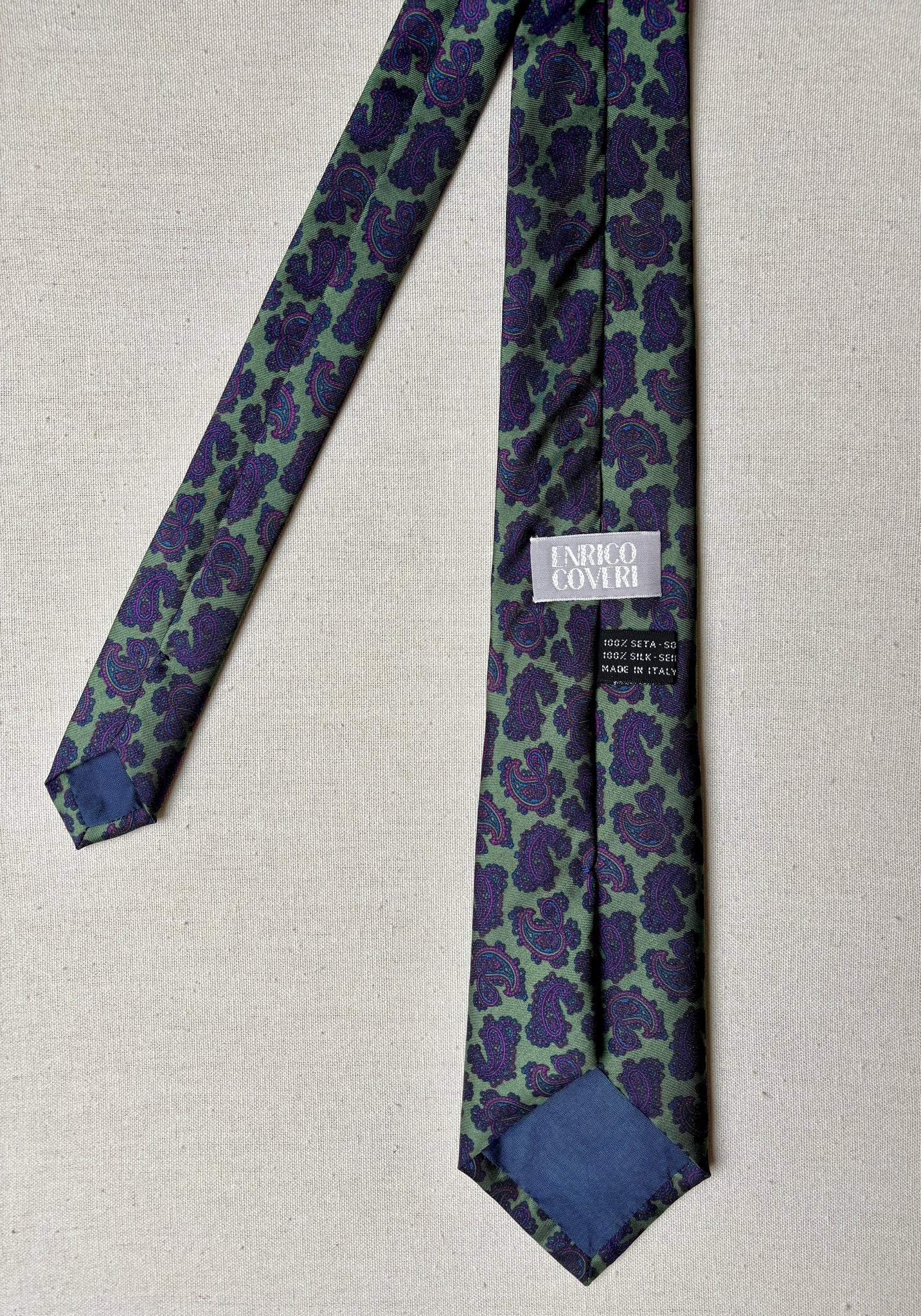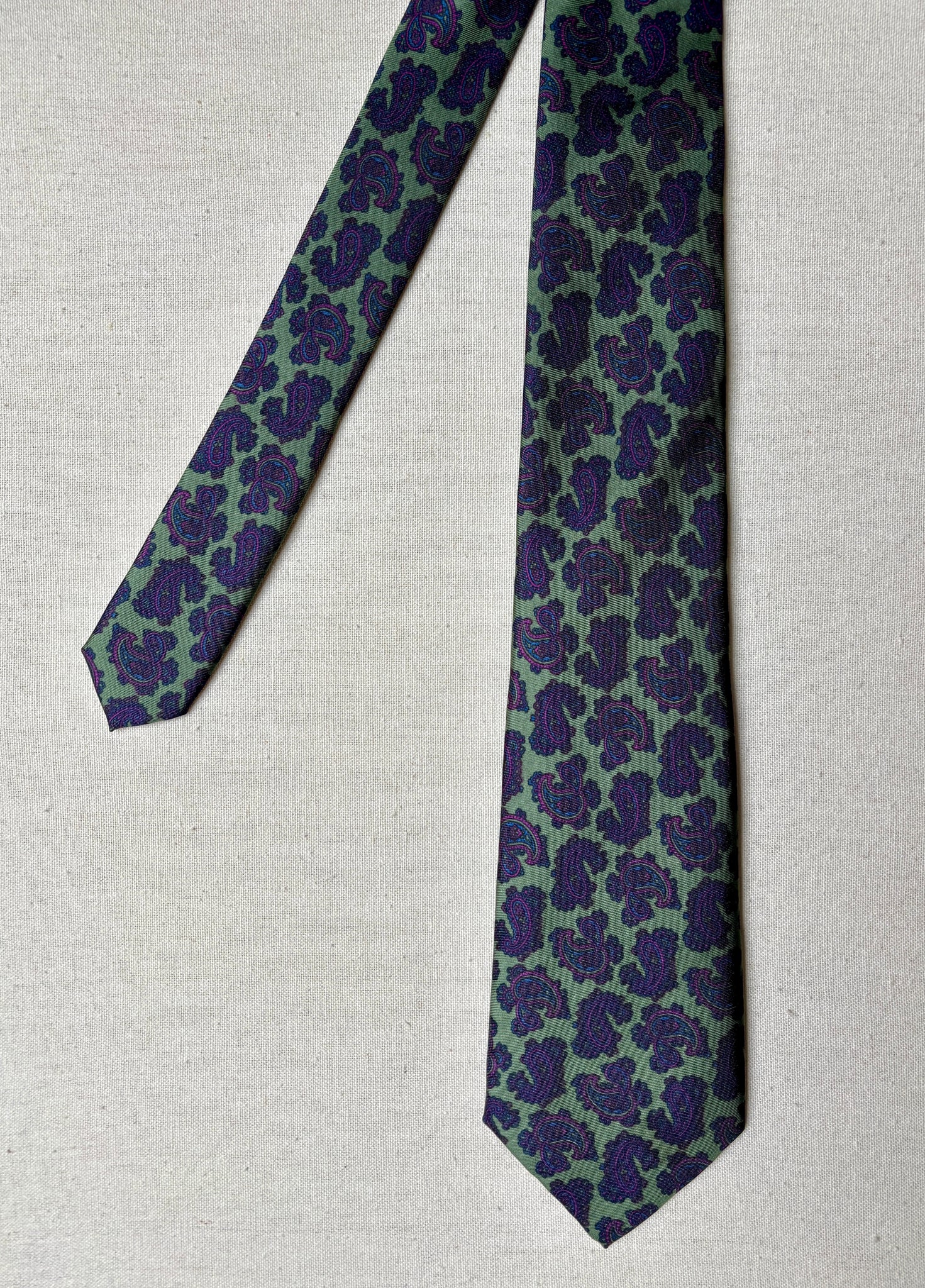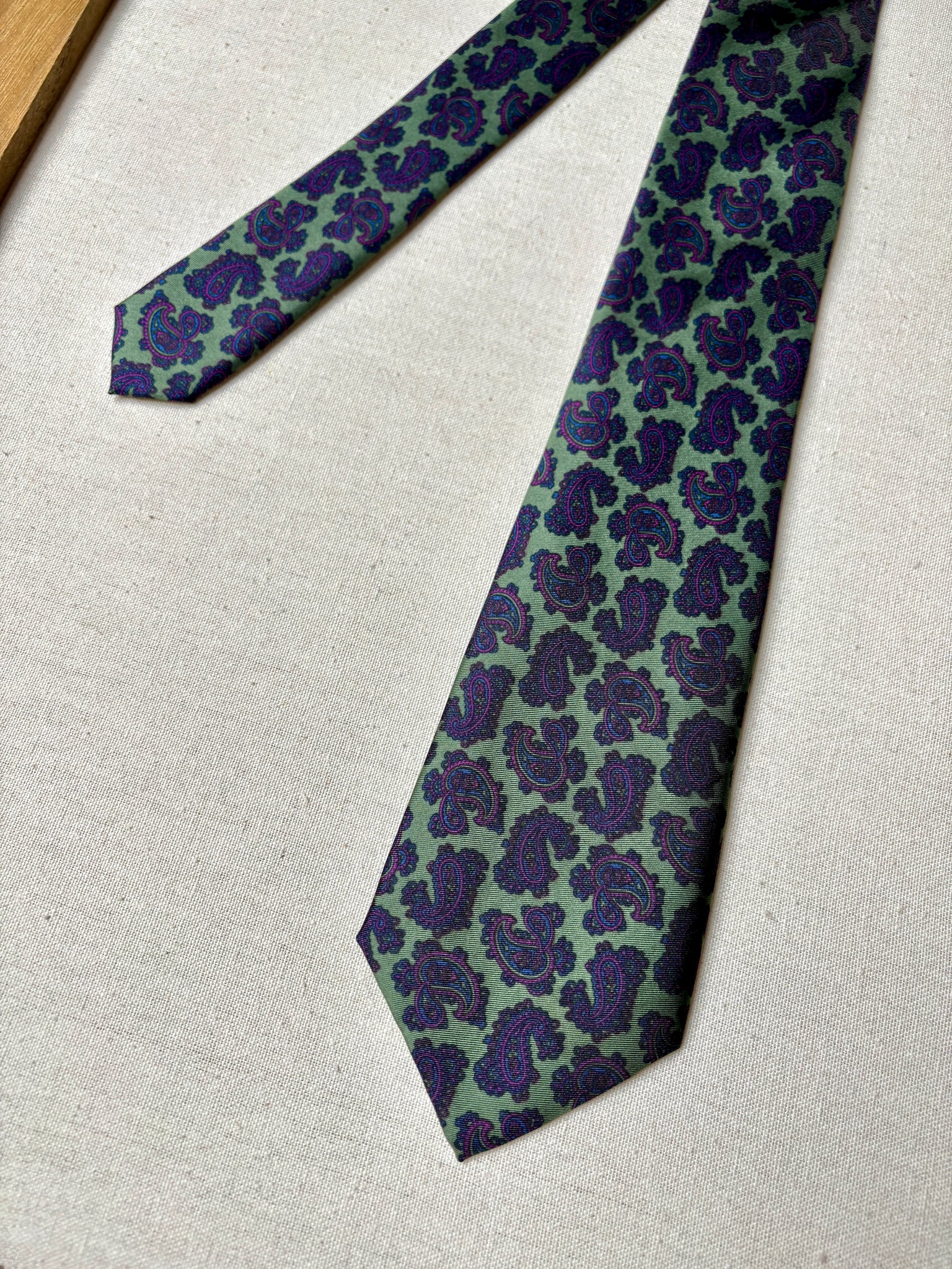 Jolie cravate en soie vintage à motif paisley, fabriquée en Italie.