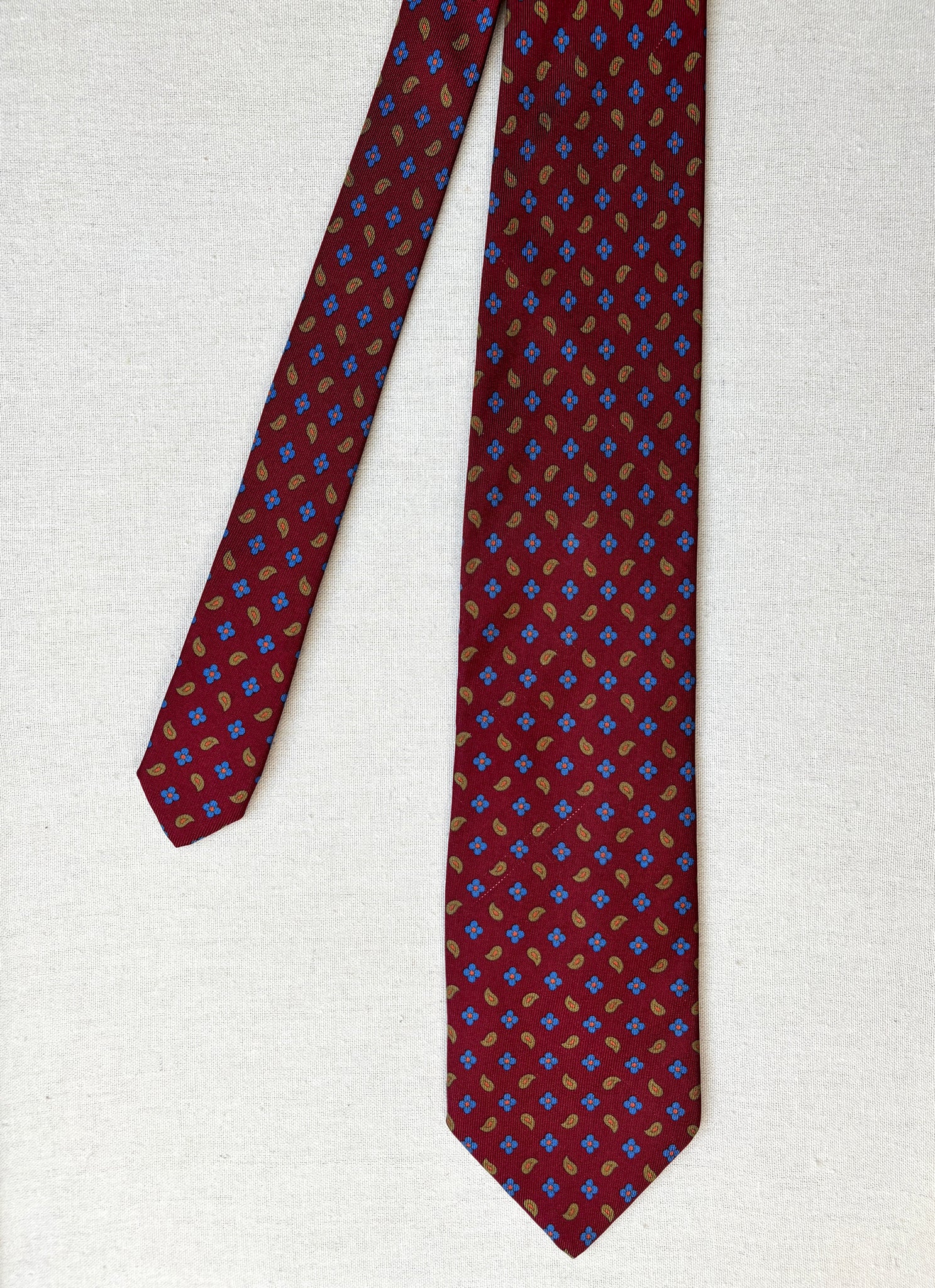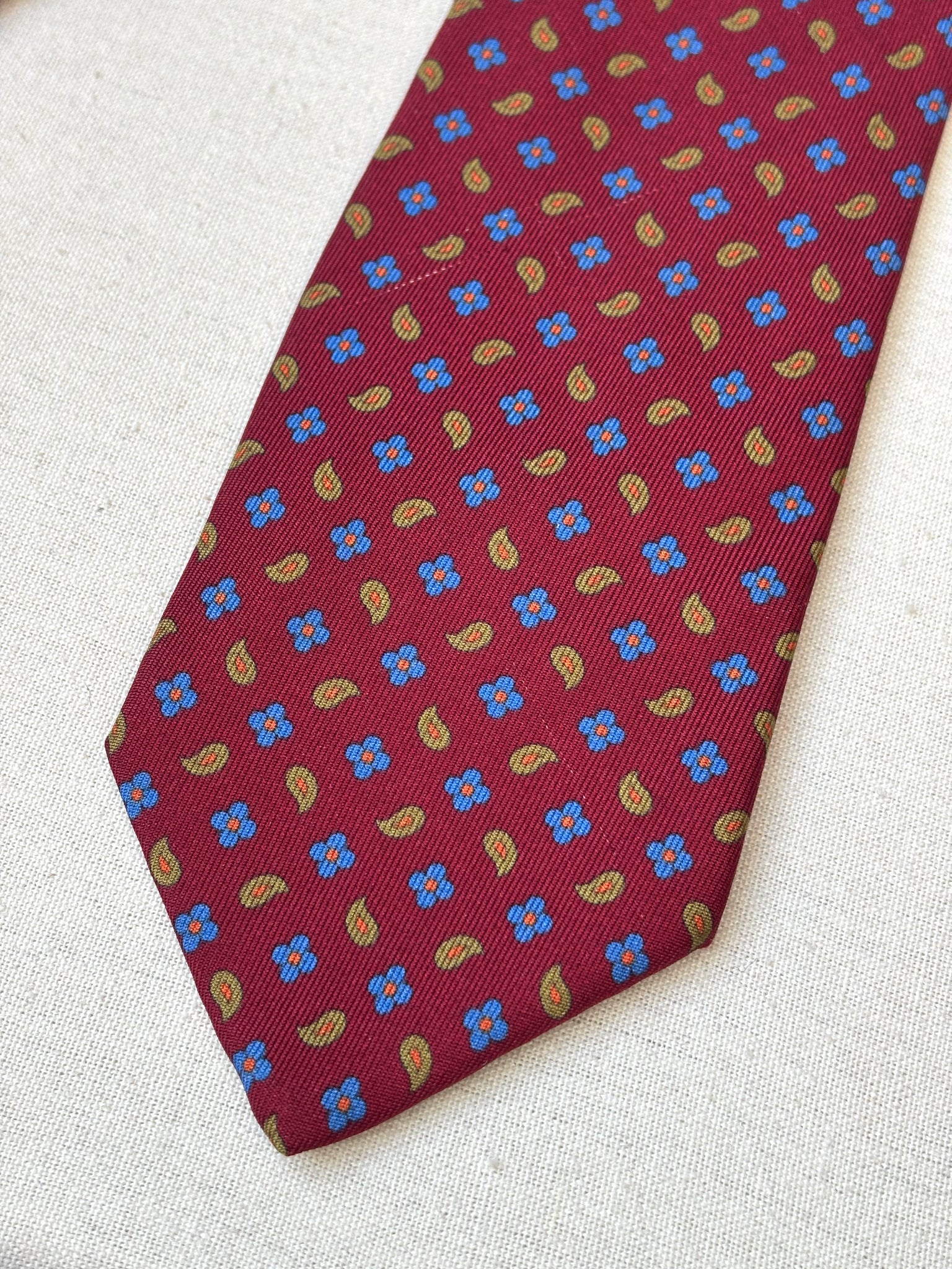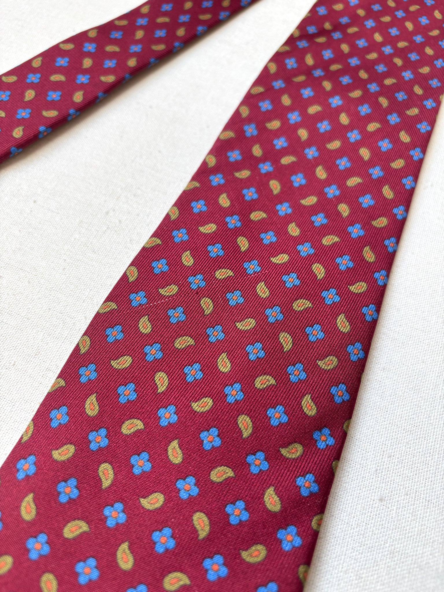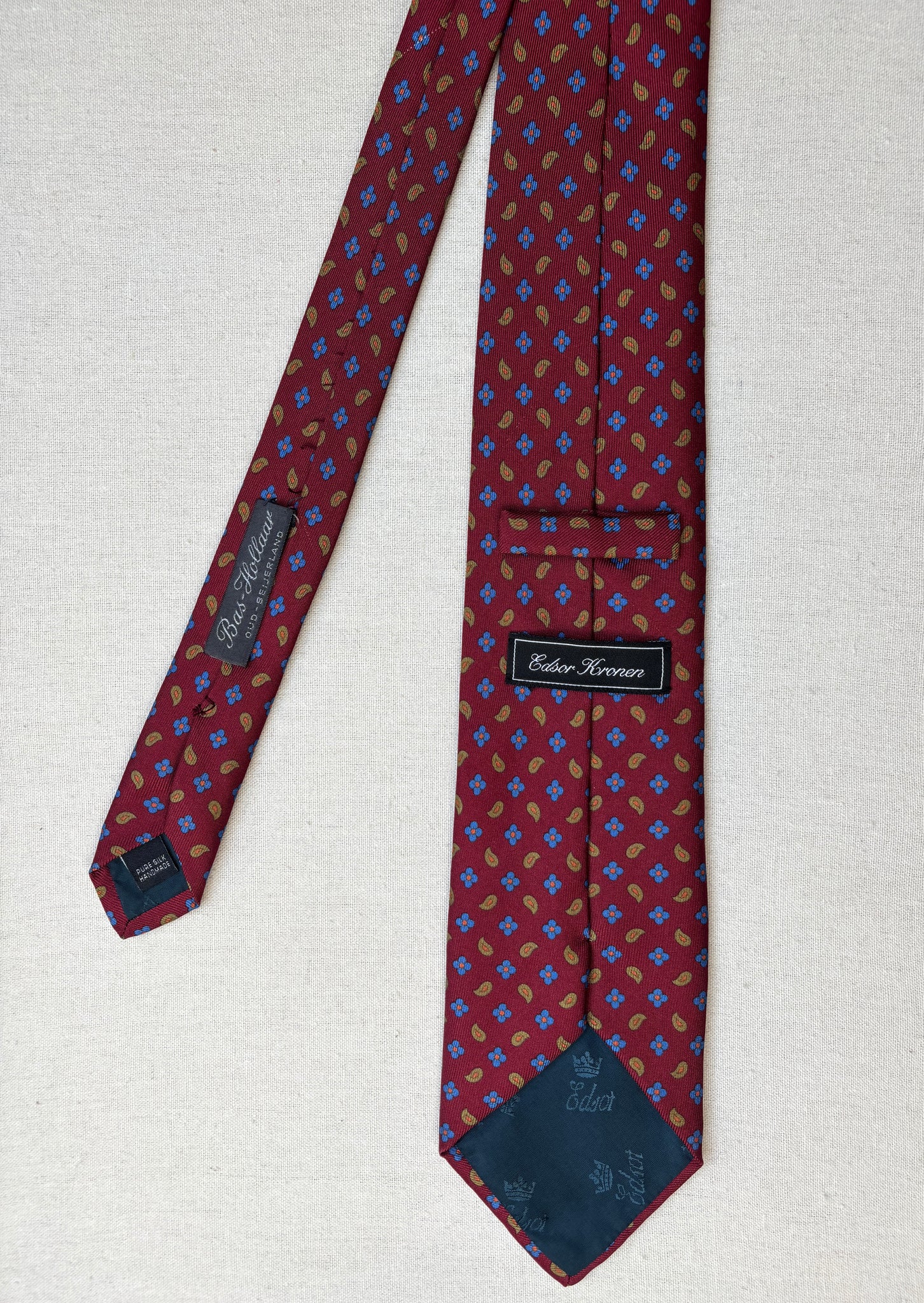 2/ Edsor Kronen cravate rouge bordeaux vintage 100% soie à motif floral paisley