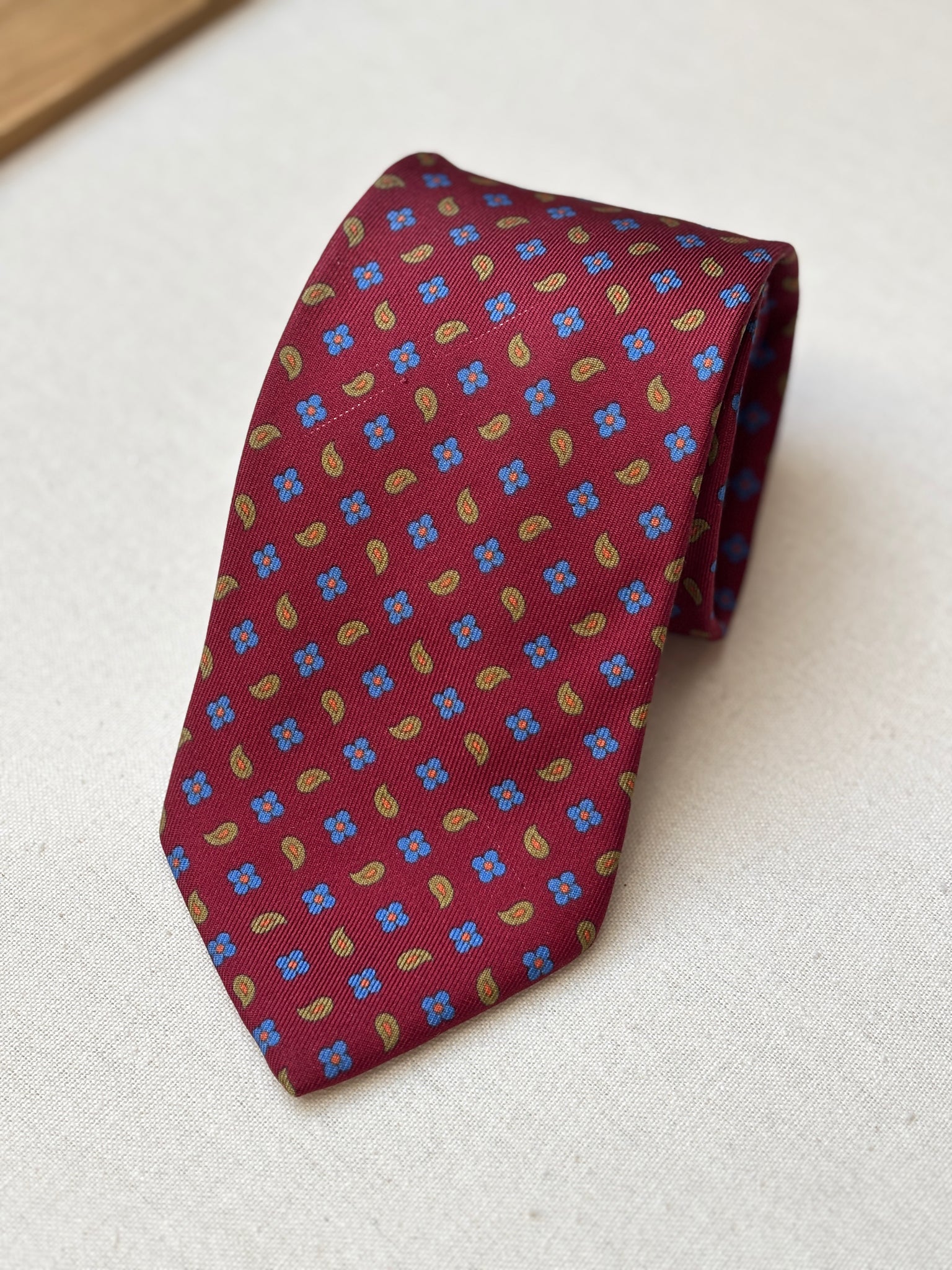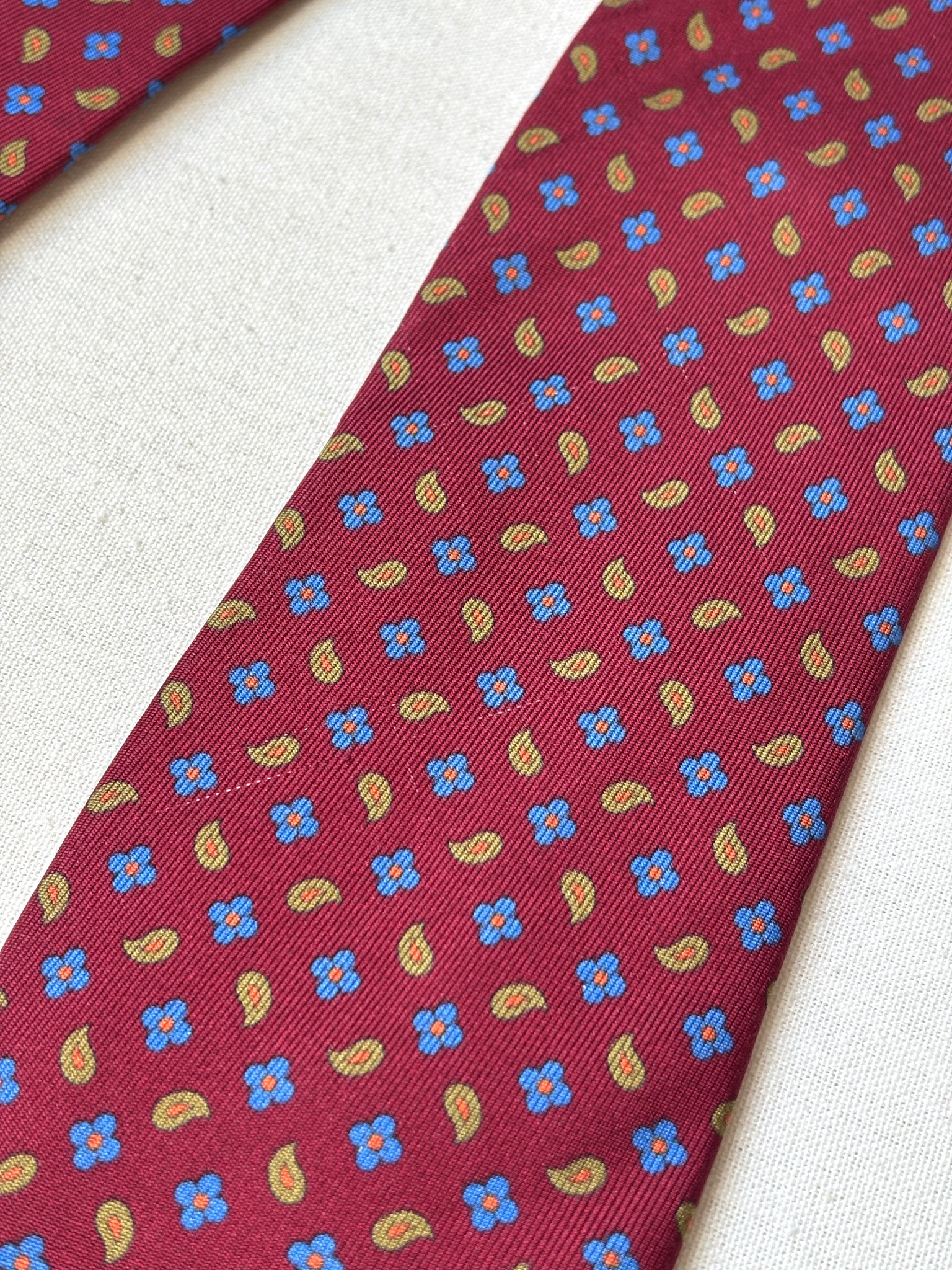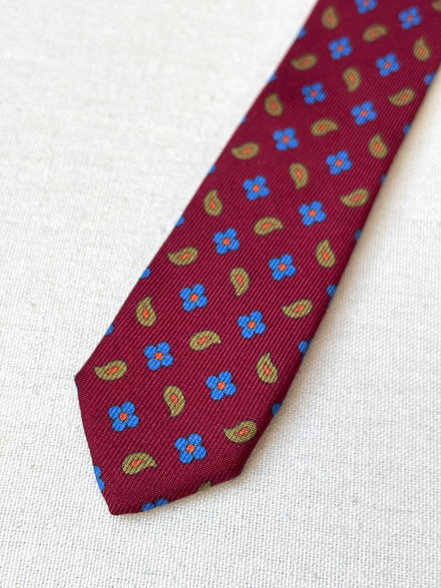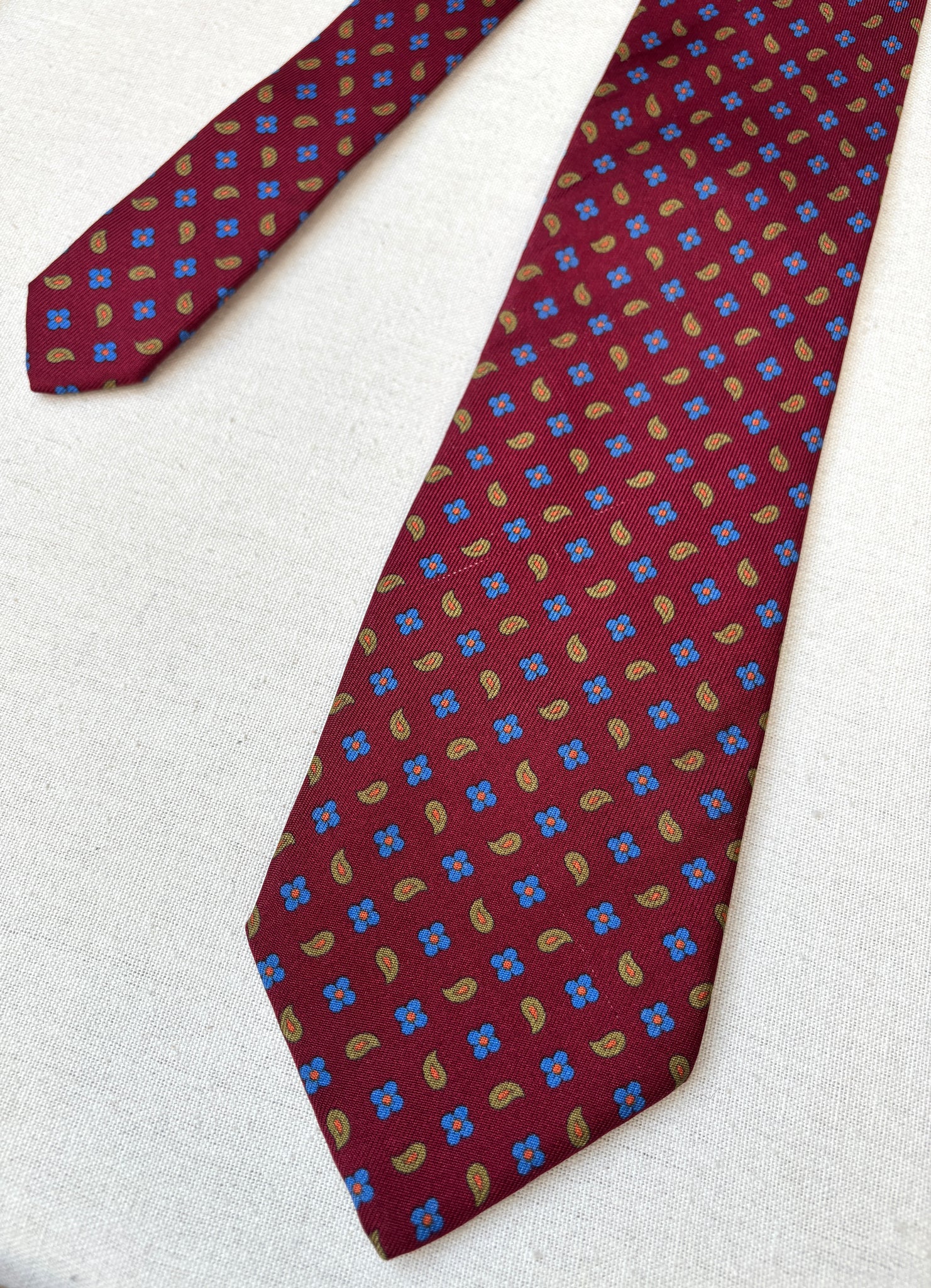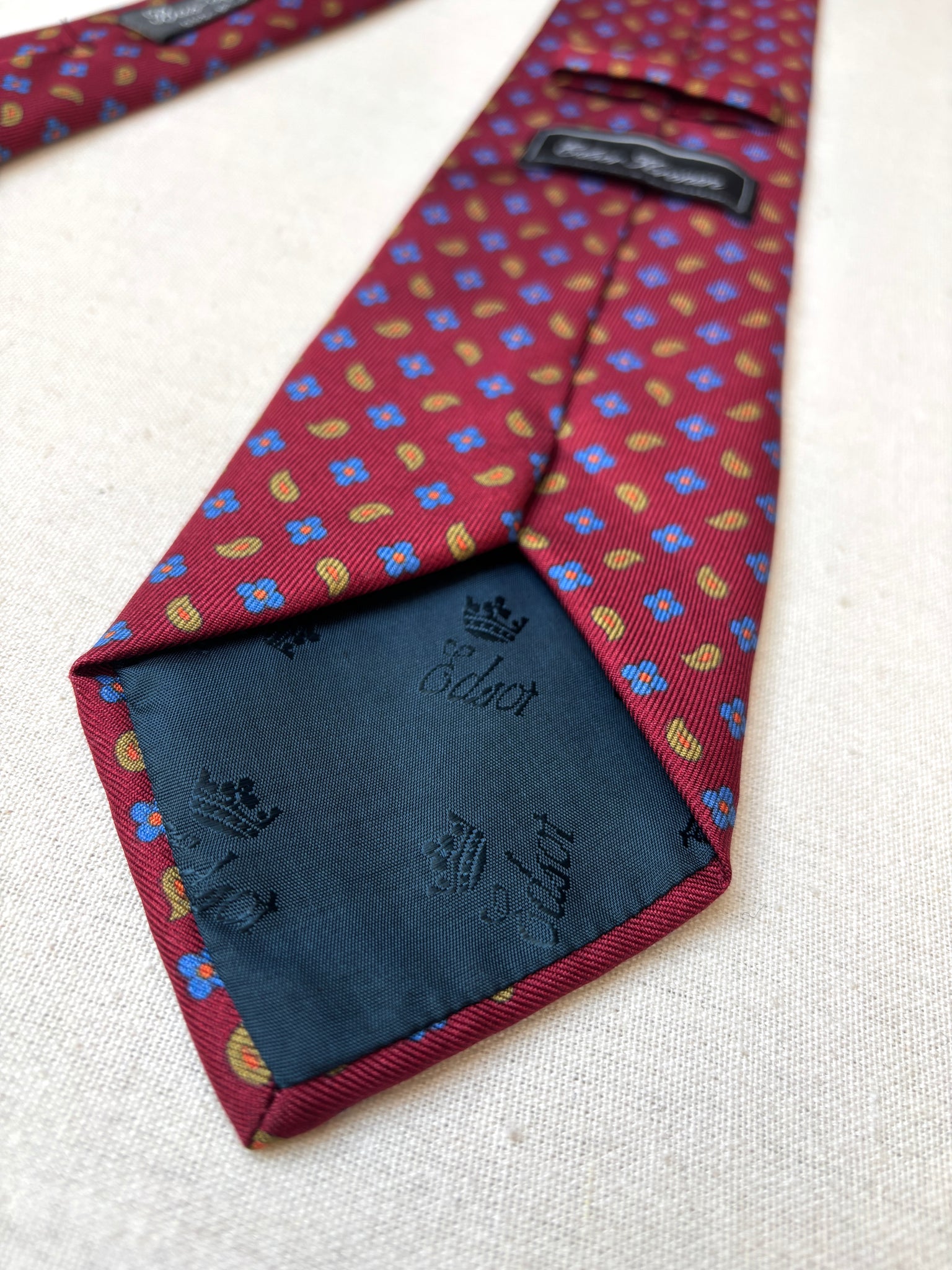 2/ Edsor Kronen cravate rouge bordeaux vintage 100% soie à motif floral paisley