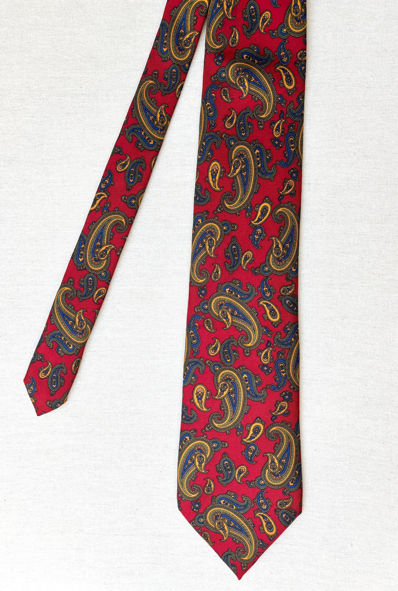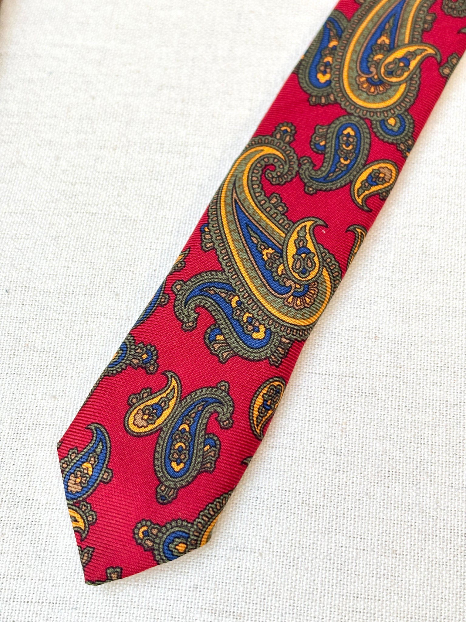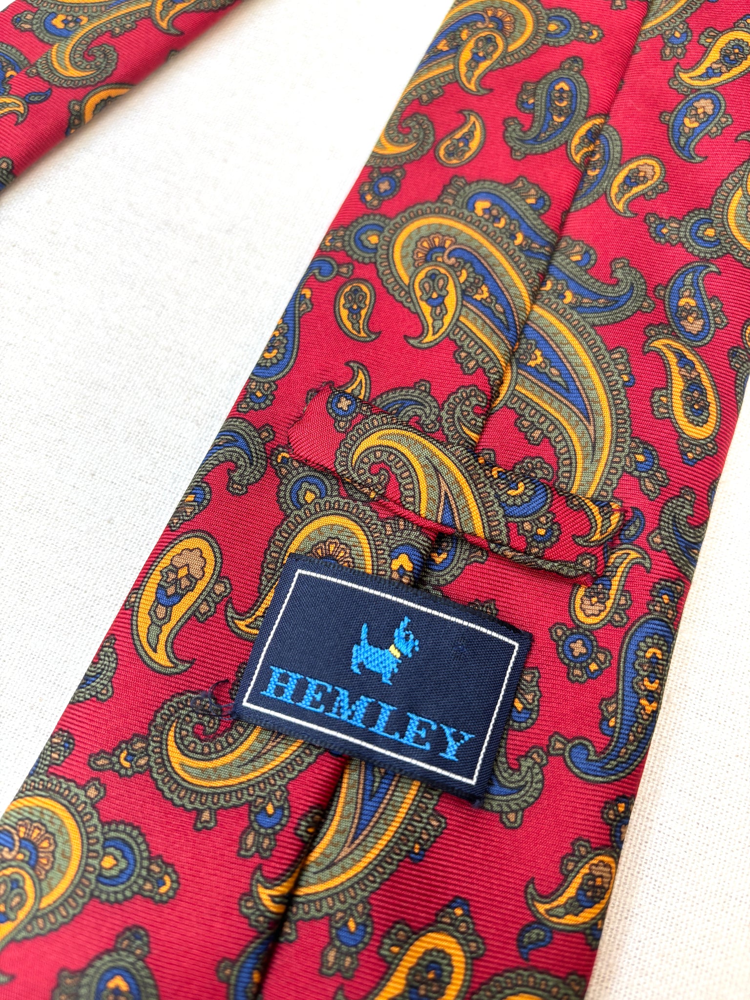 2/ Hemley cravate rouge vintage 100% soie à motif paisley