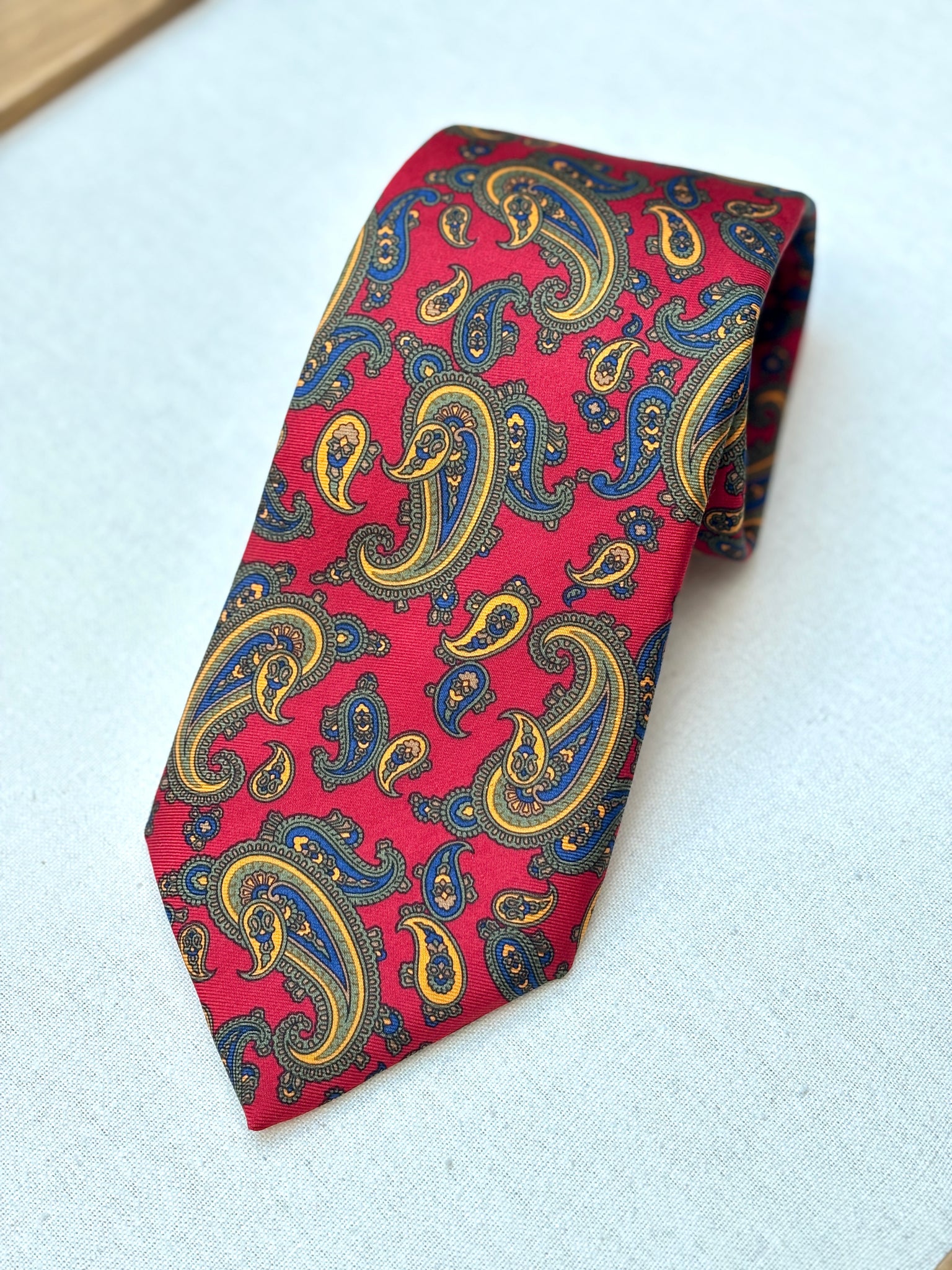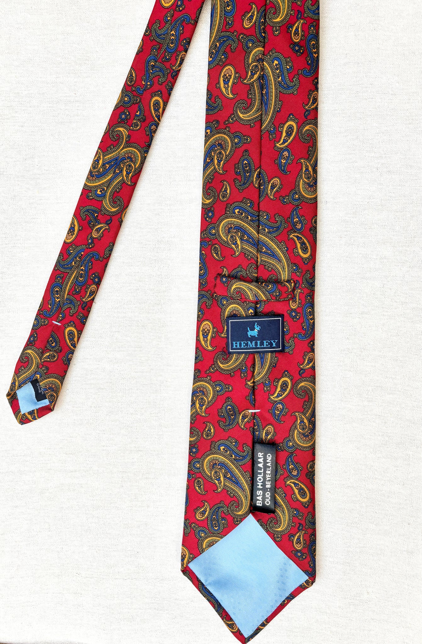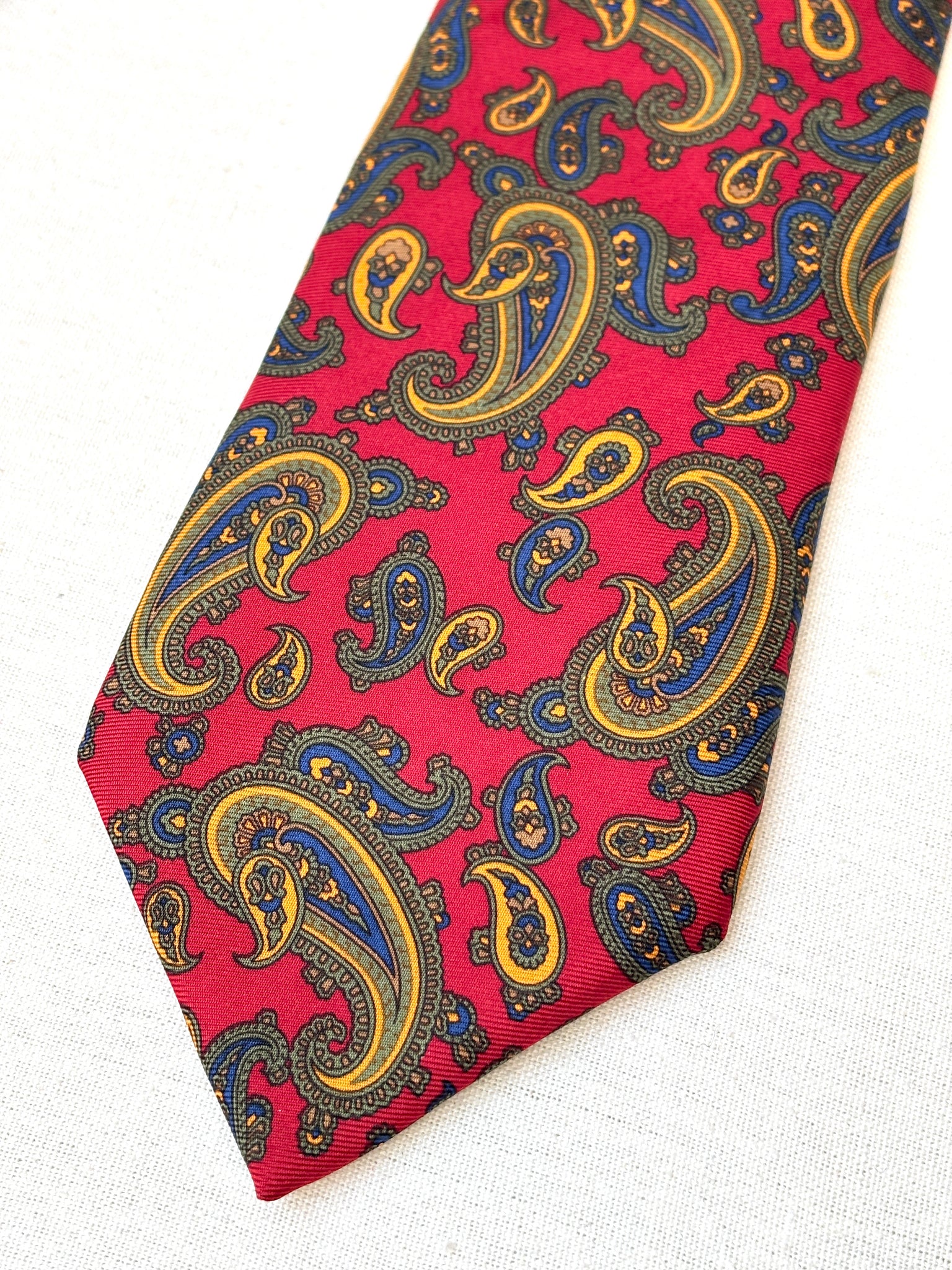 2/ Hemley cravate rouge vintage 100% soie à motif paisley