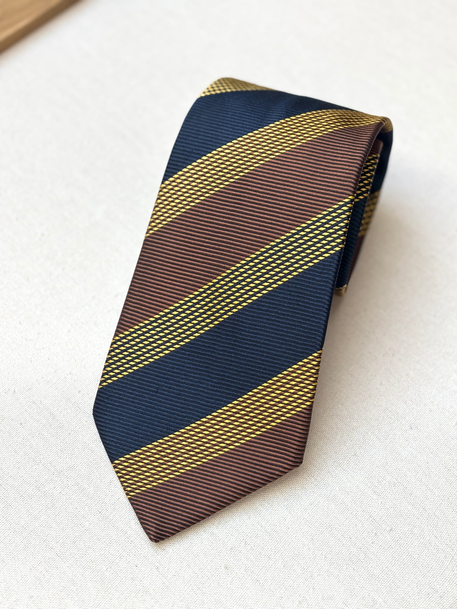 Coloris : Bleu marine, marron et jaune.