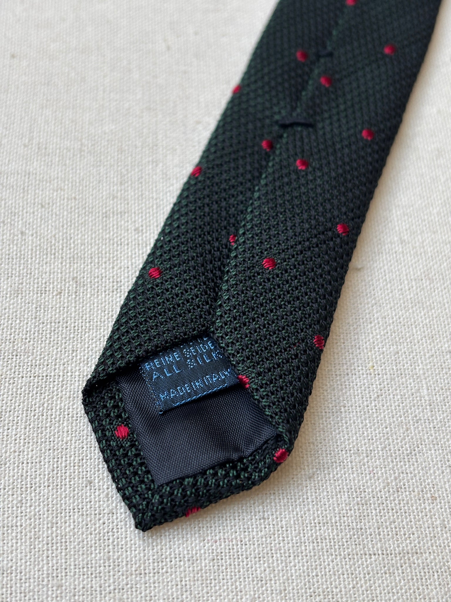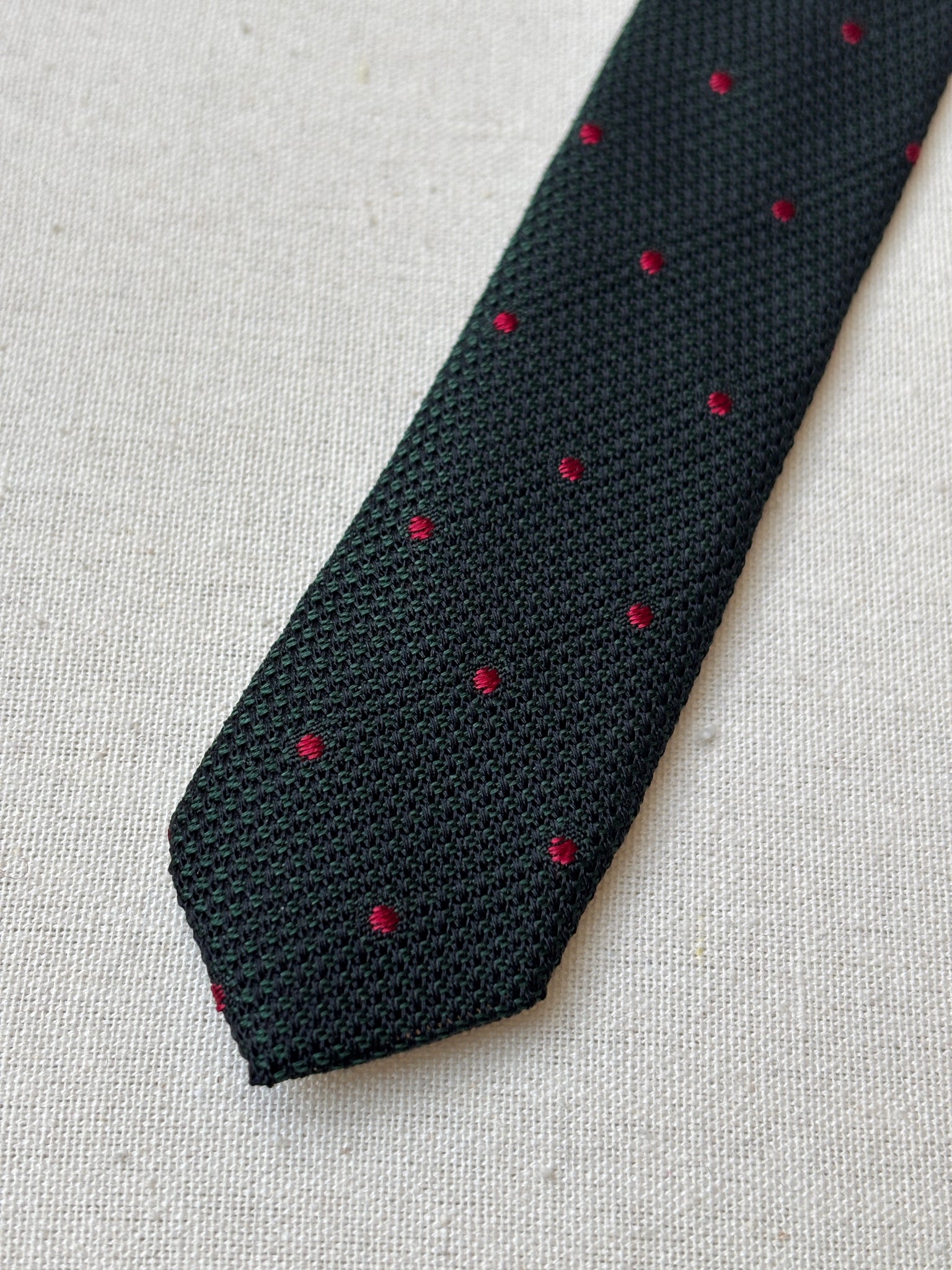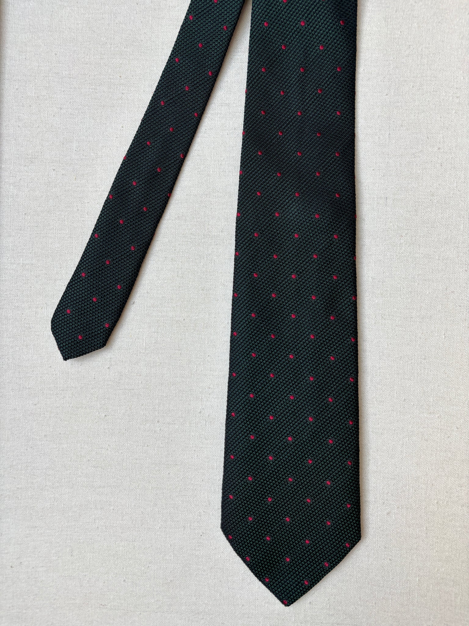 Coloris : Vert foncé et noir, pois rouge.