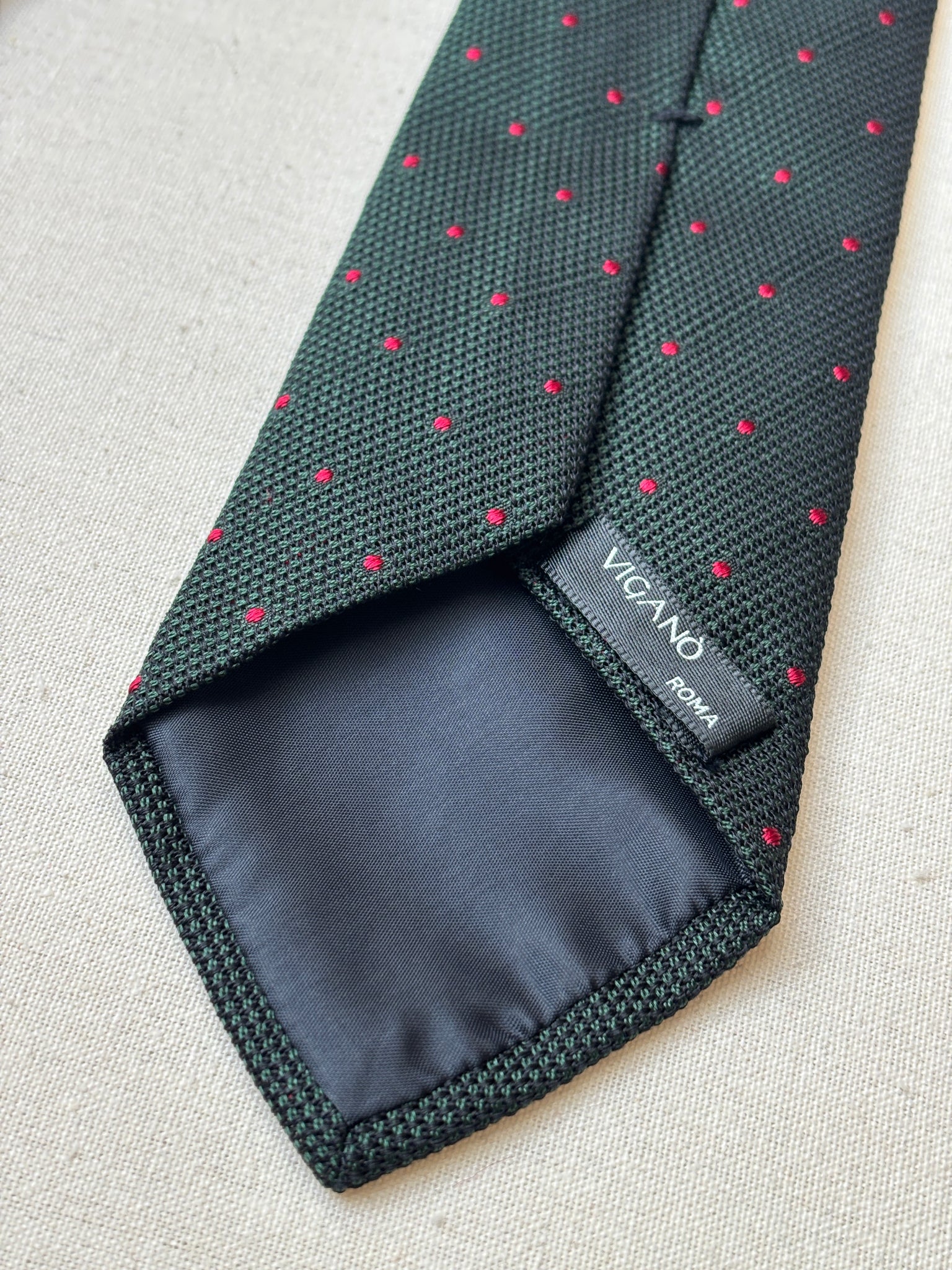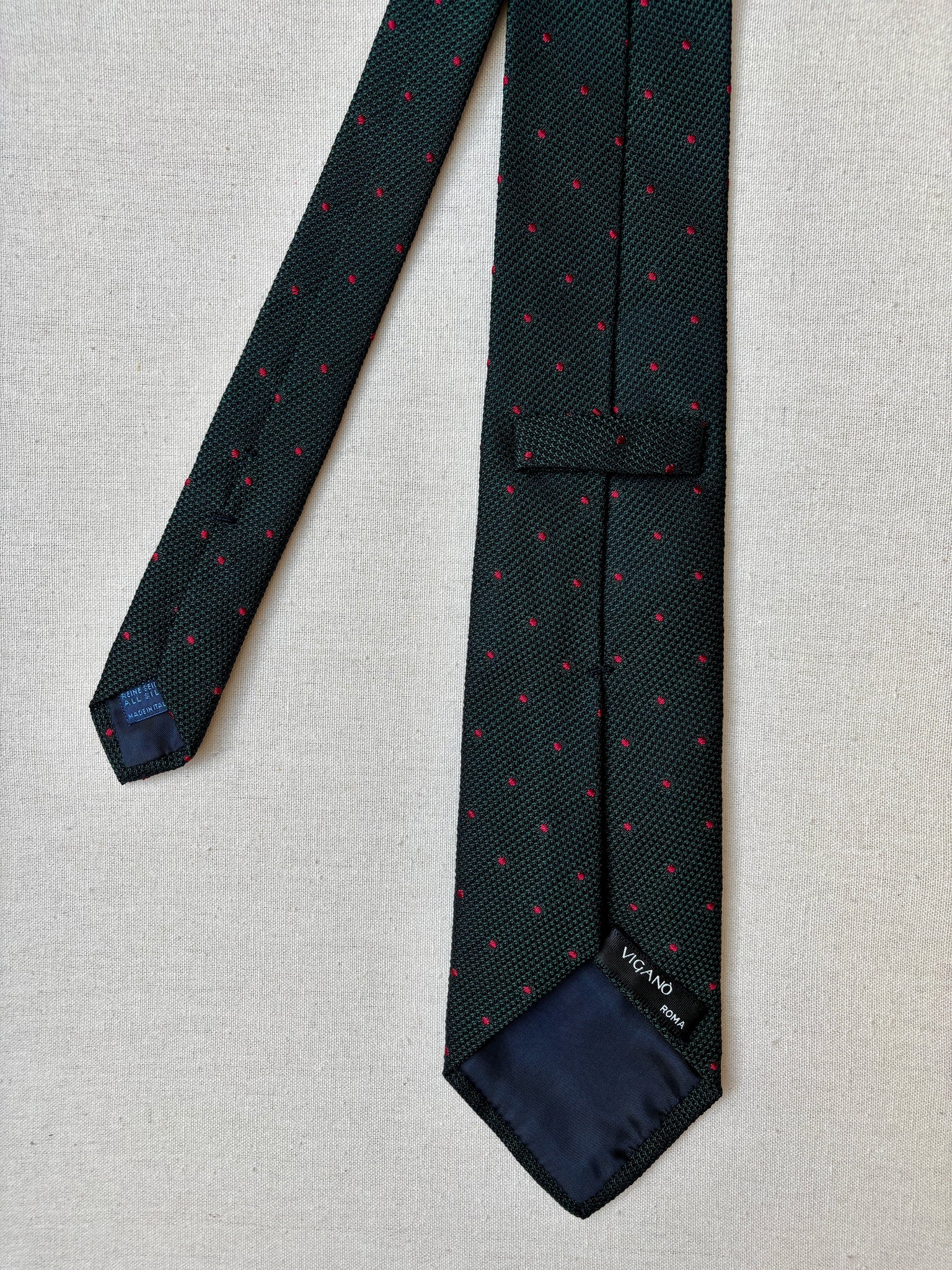Vigano Roma cravate verte à pois en grenadine de soie Made in Italy
