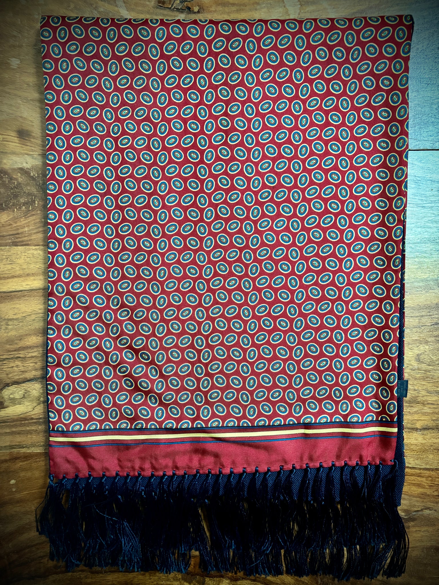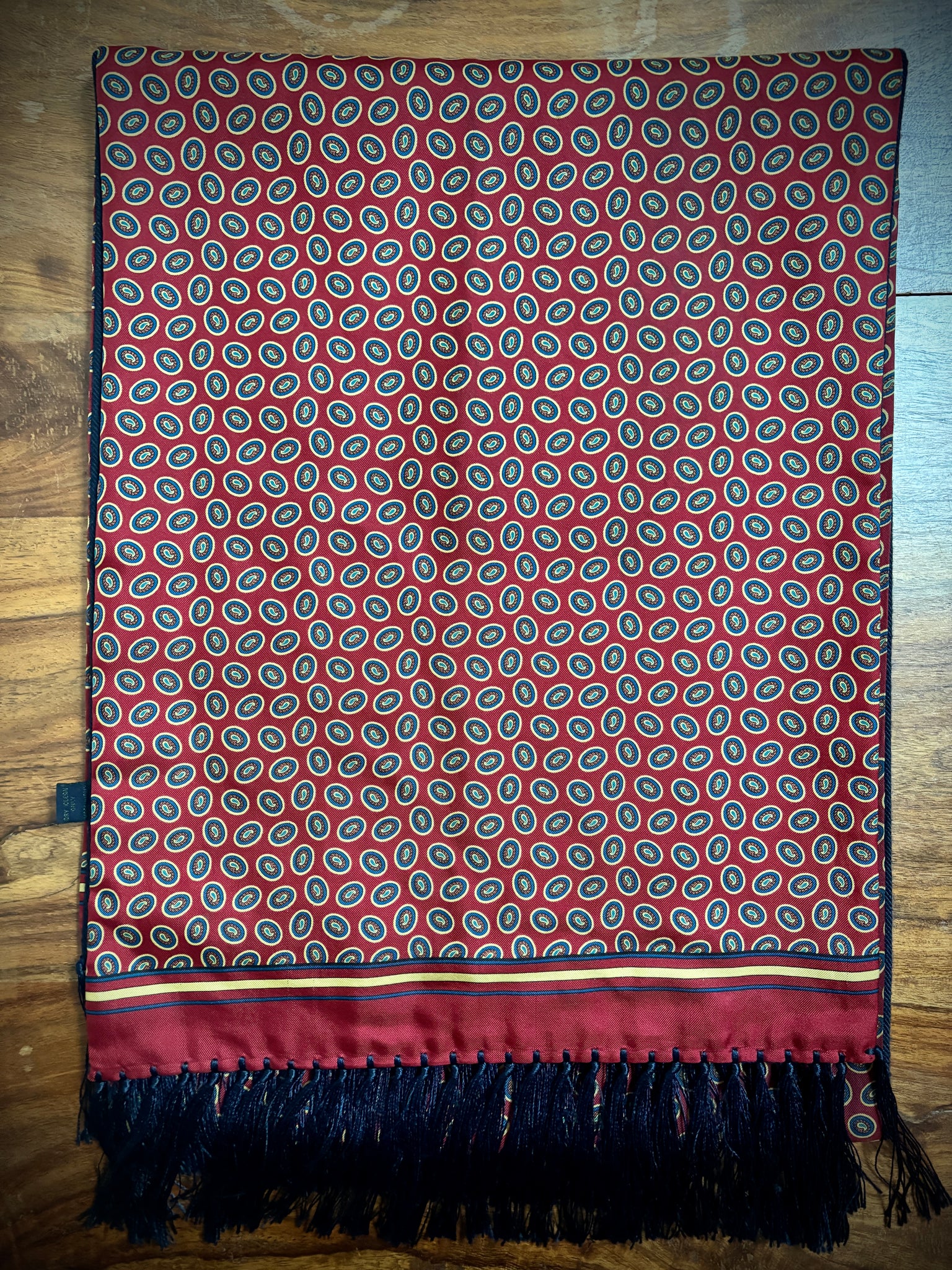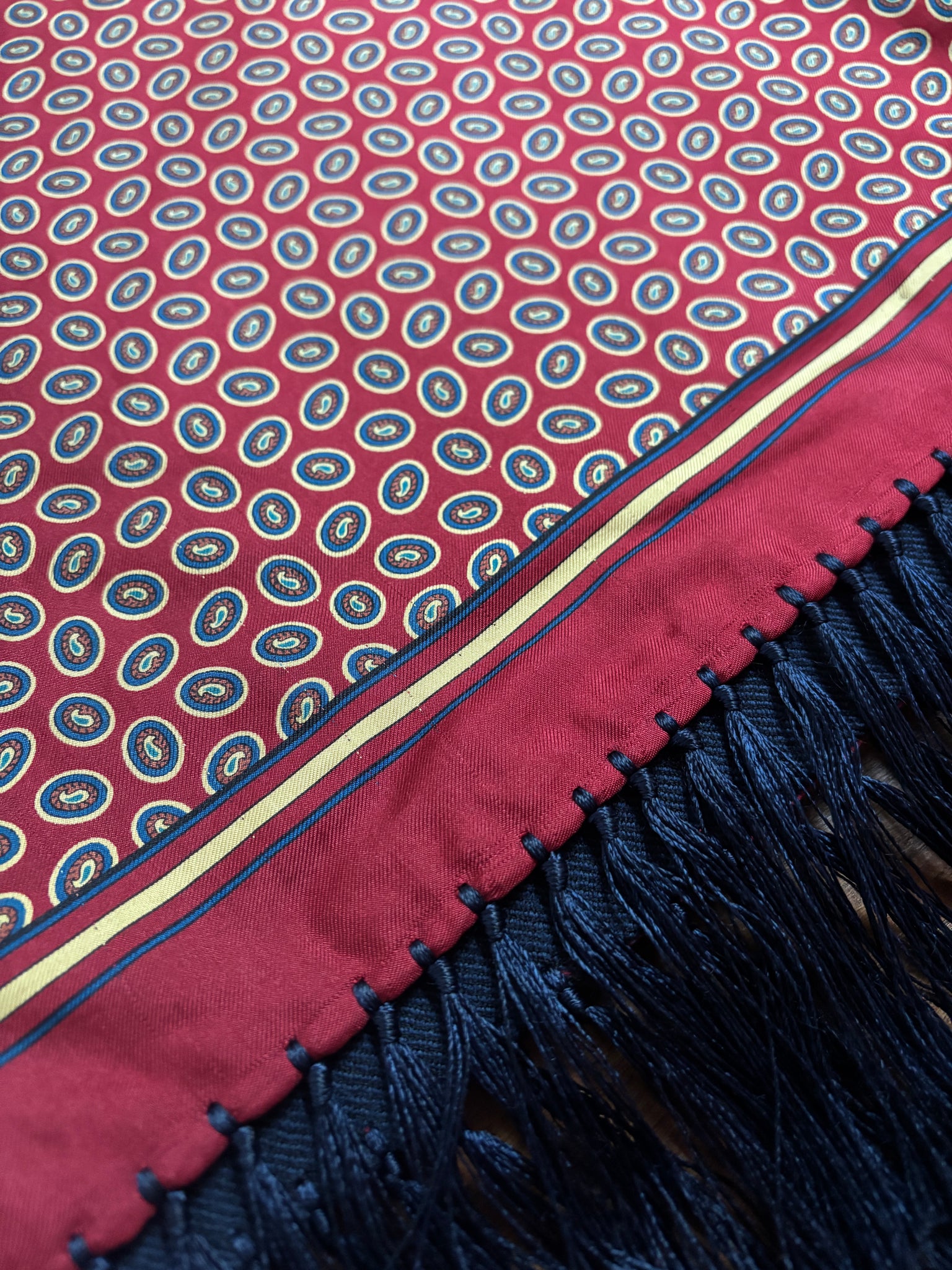 Joli foulard à franges vintage à motif paisley griffé Pica Milano, fabriqué en Italie.
