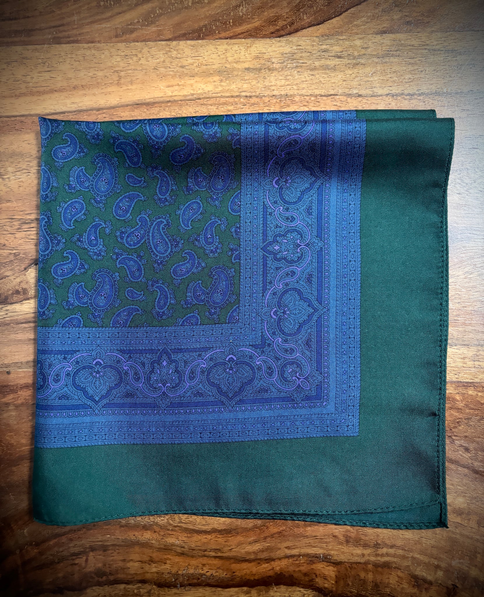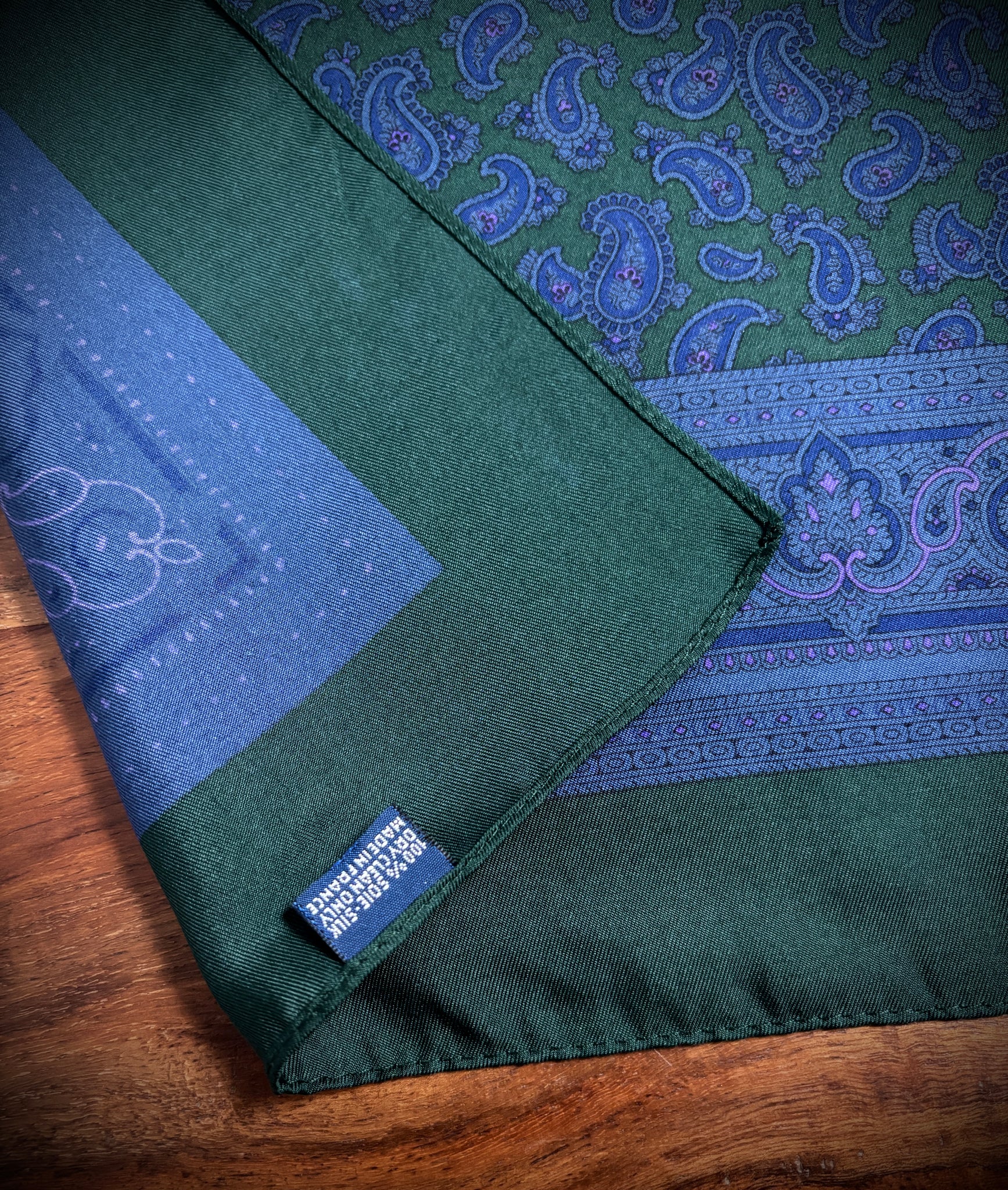 Jolie pochette en soie à motif paisley, fabriquée en France par la maison Breuer.