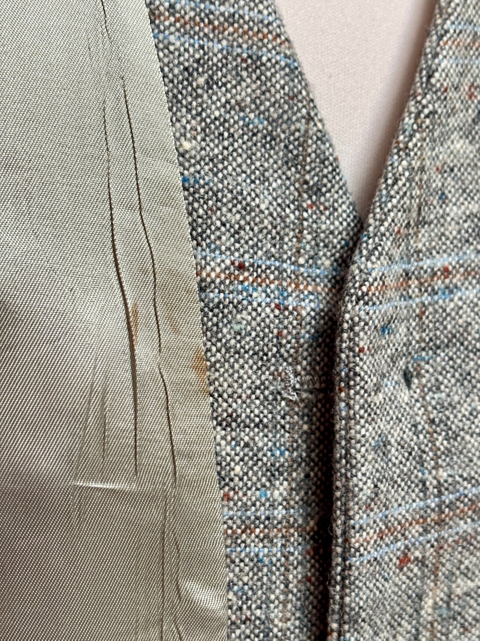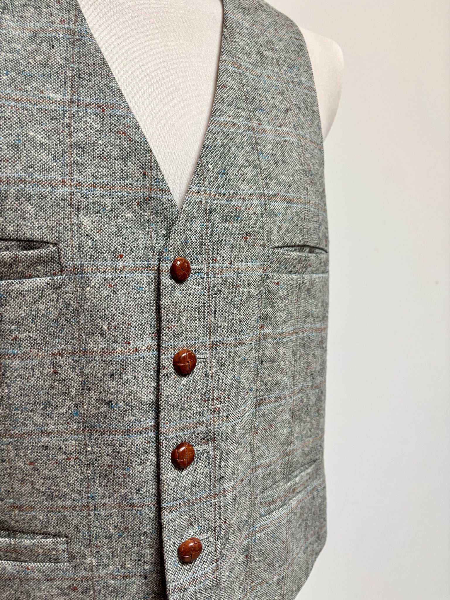 Superbe gilet de costume vintage en laine à carreaux fenêtre.
