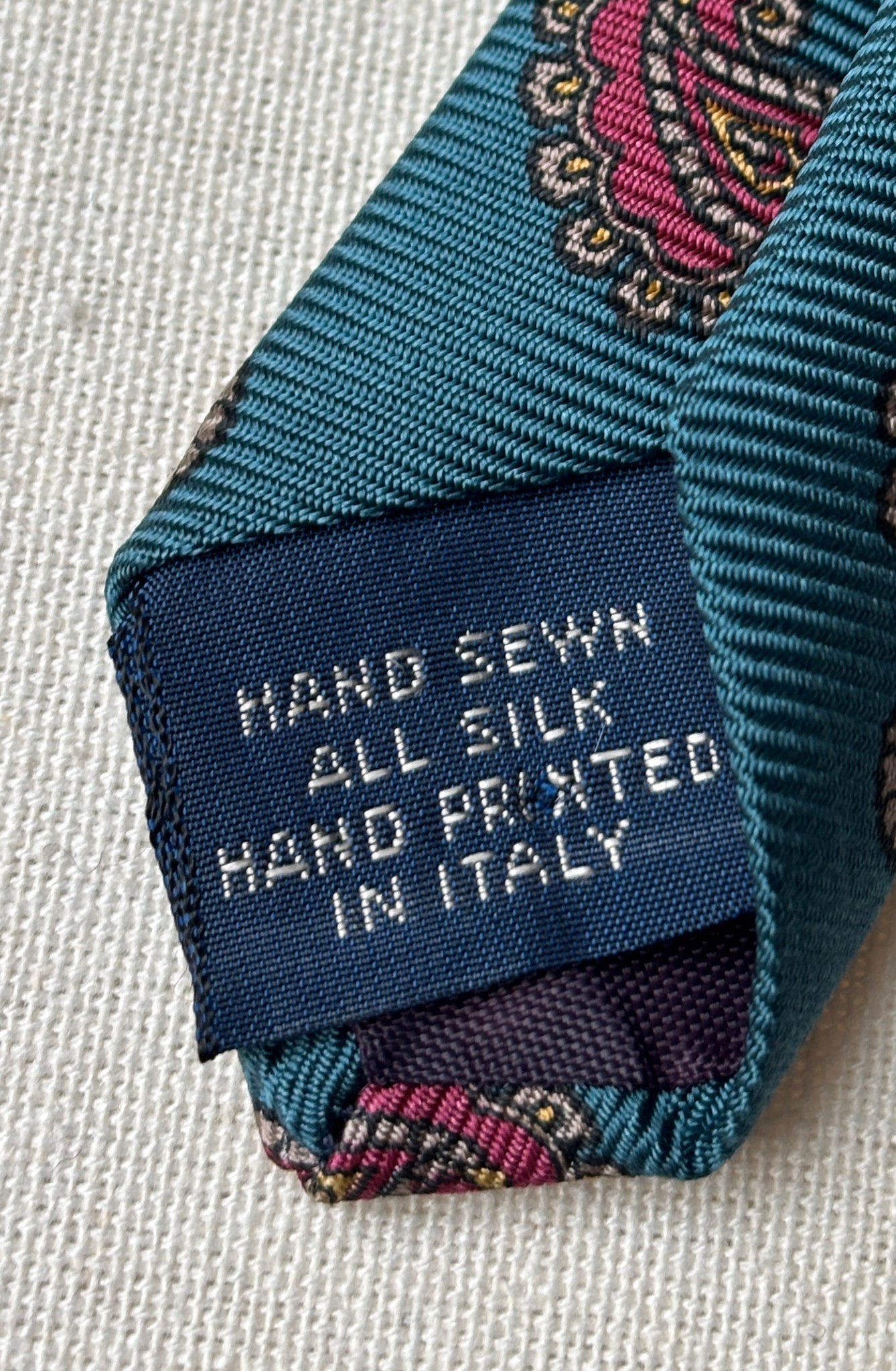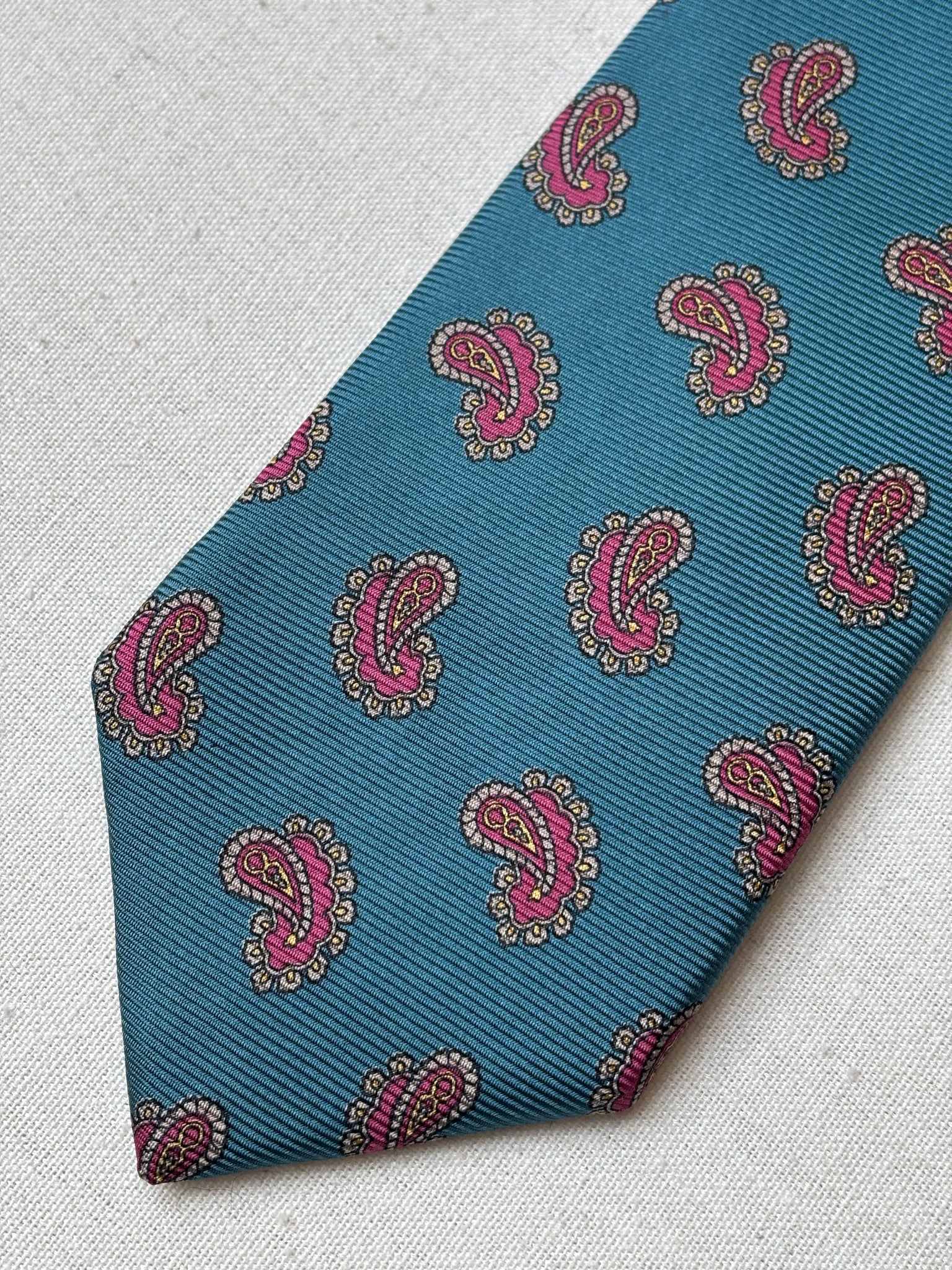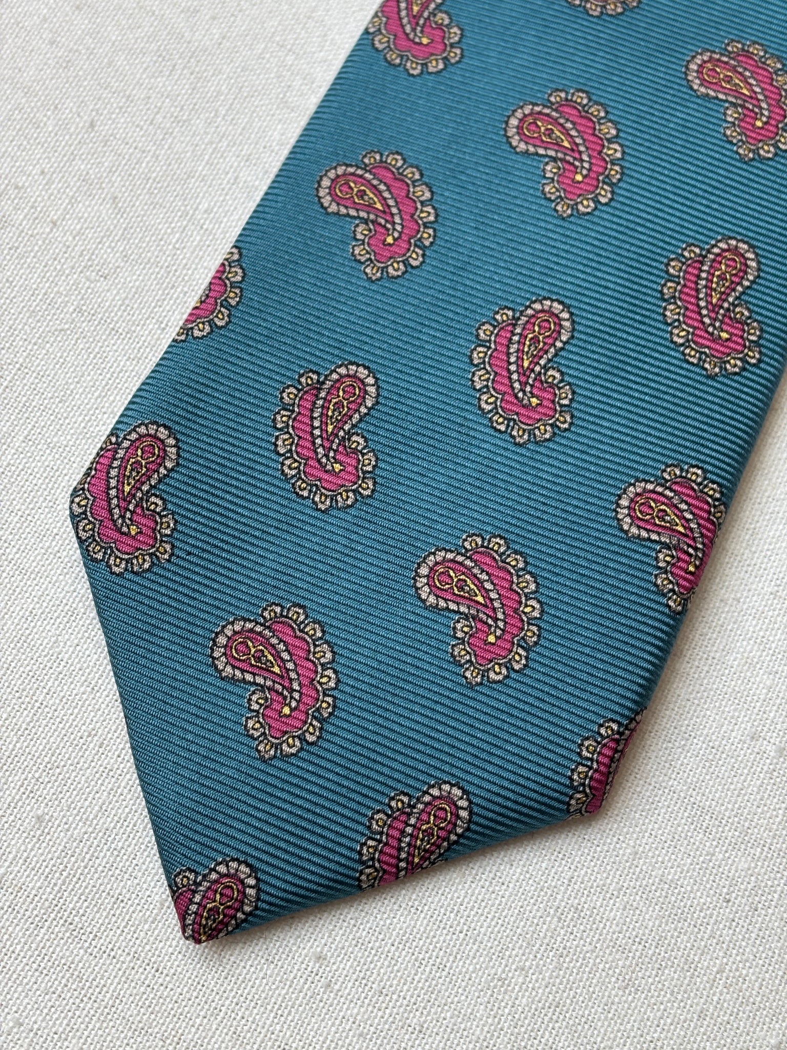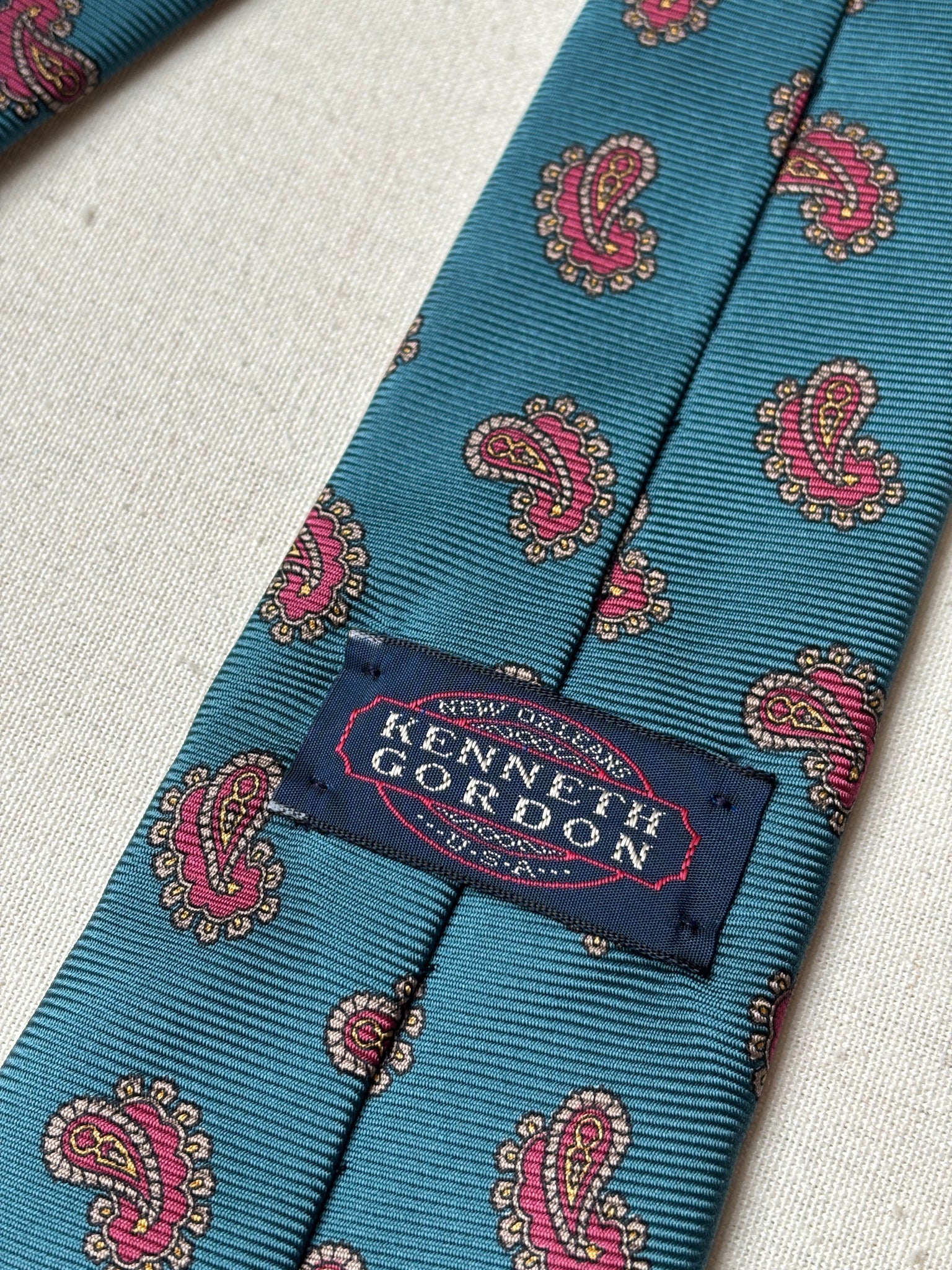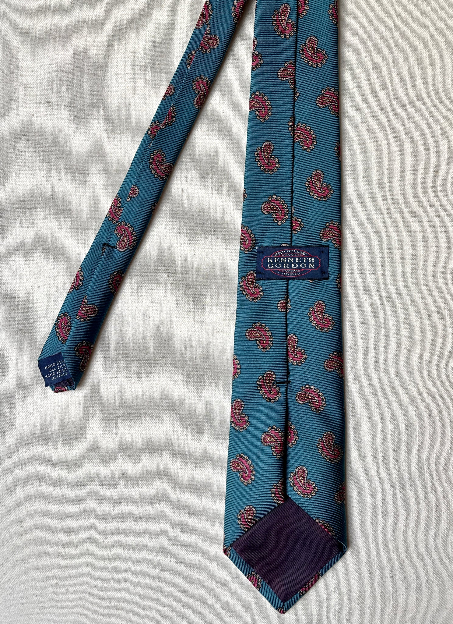 Krásná hedvábná kravata s paisley vzorem od Kennetha Gordona, vyrobená v Itálii.