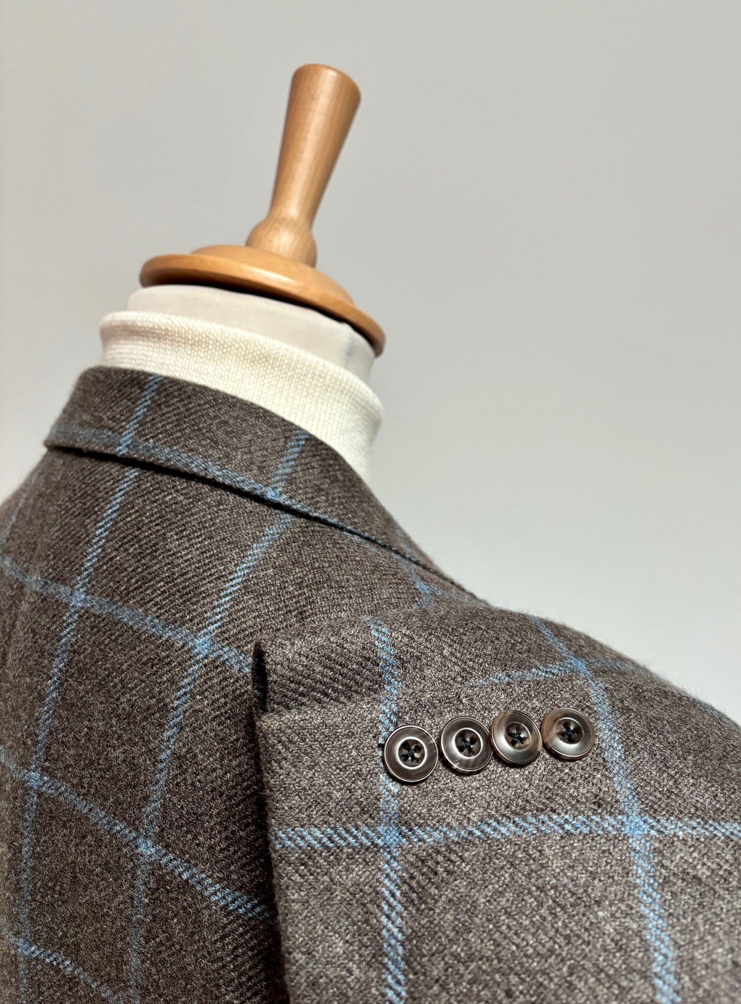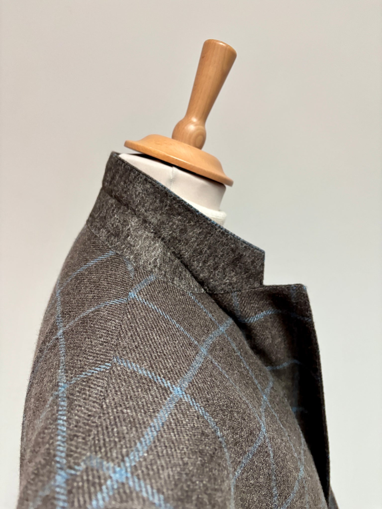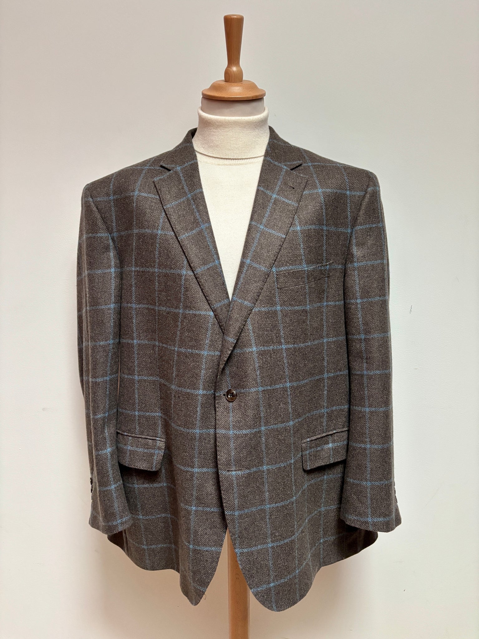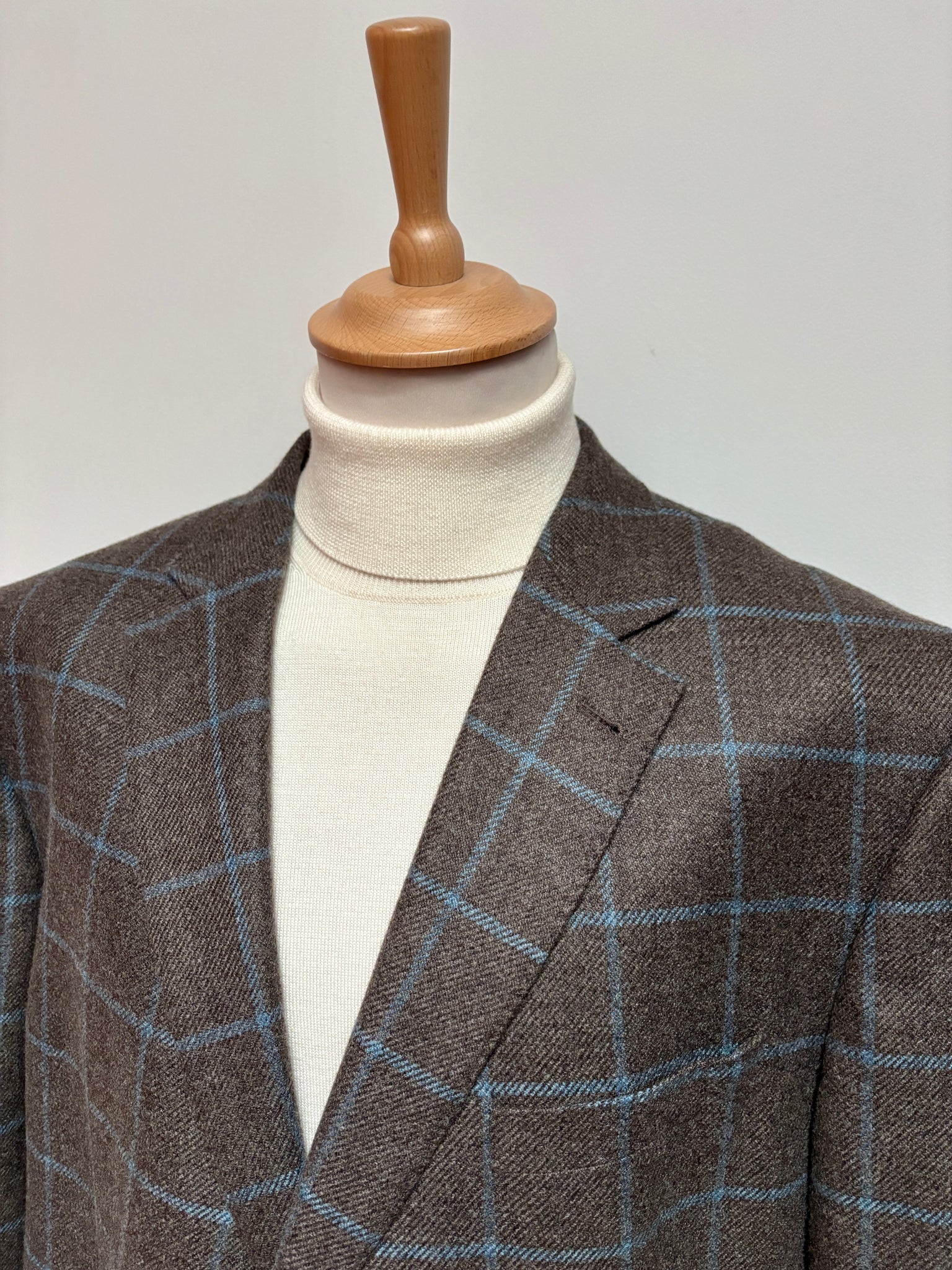 Krásné hnědo-modré kašmírové sako s okénky od Loro Piana, s označením Clotherie Phoenix, vyrobené v Kanadě.