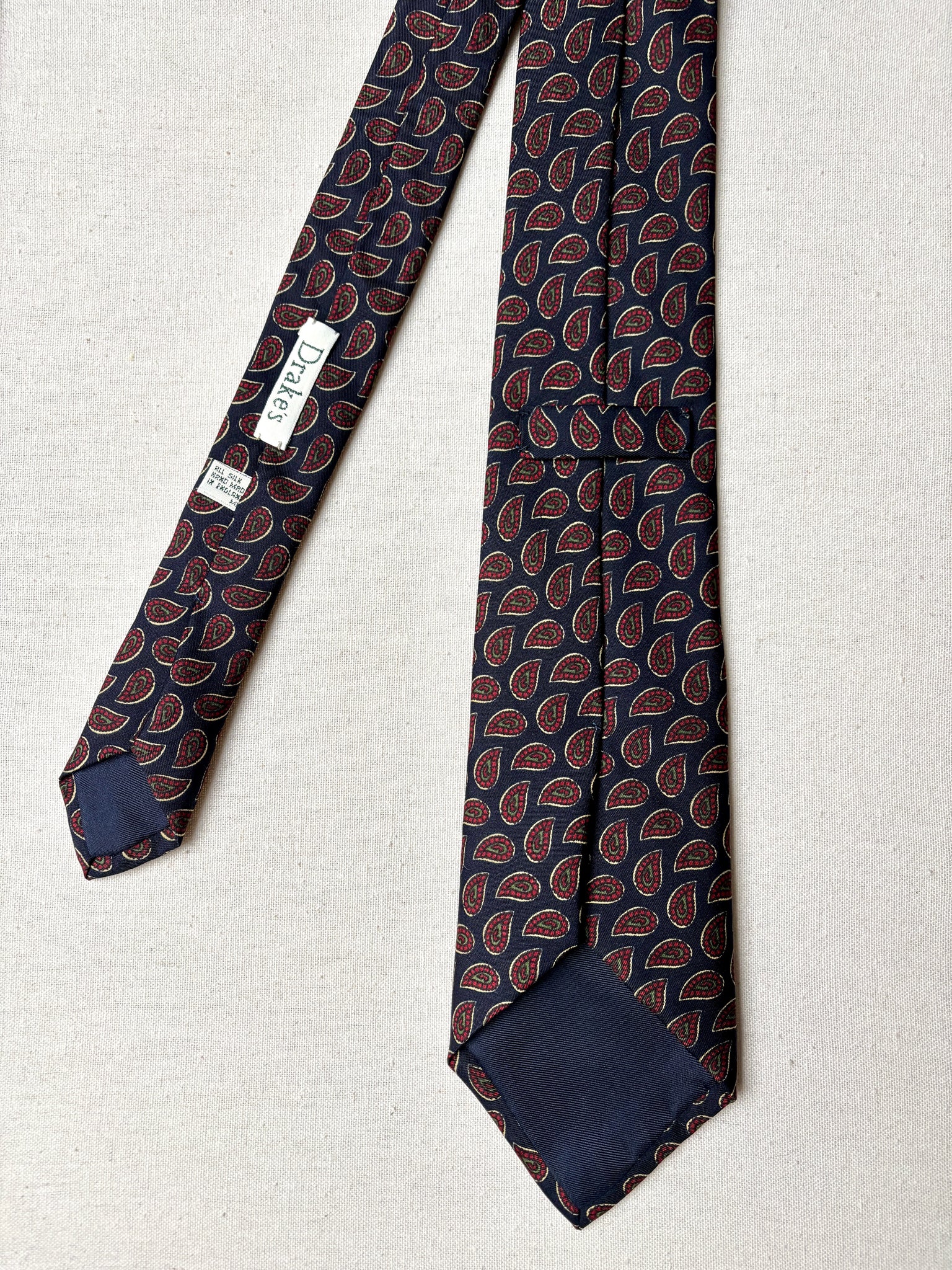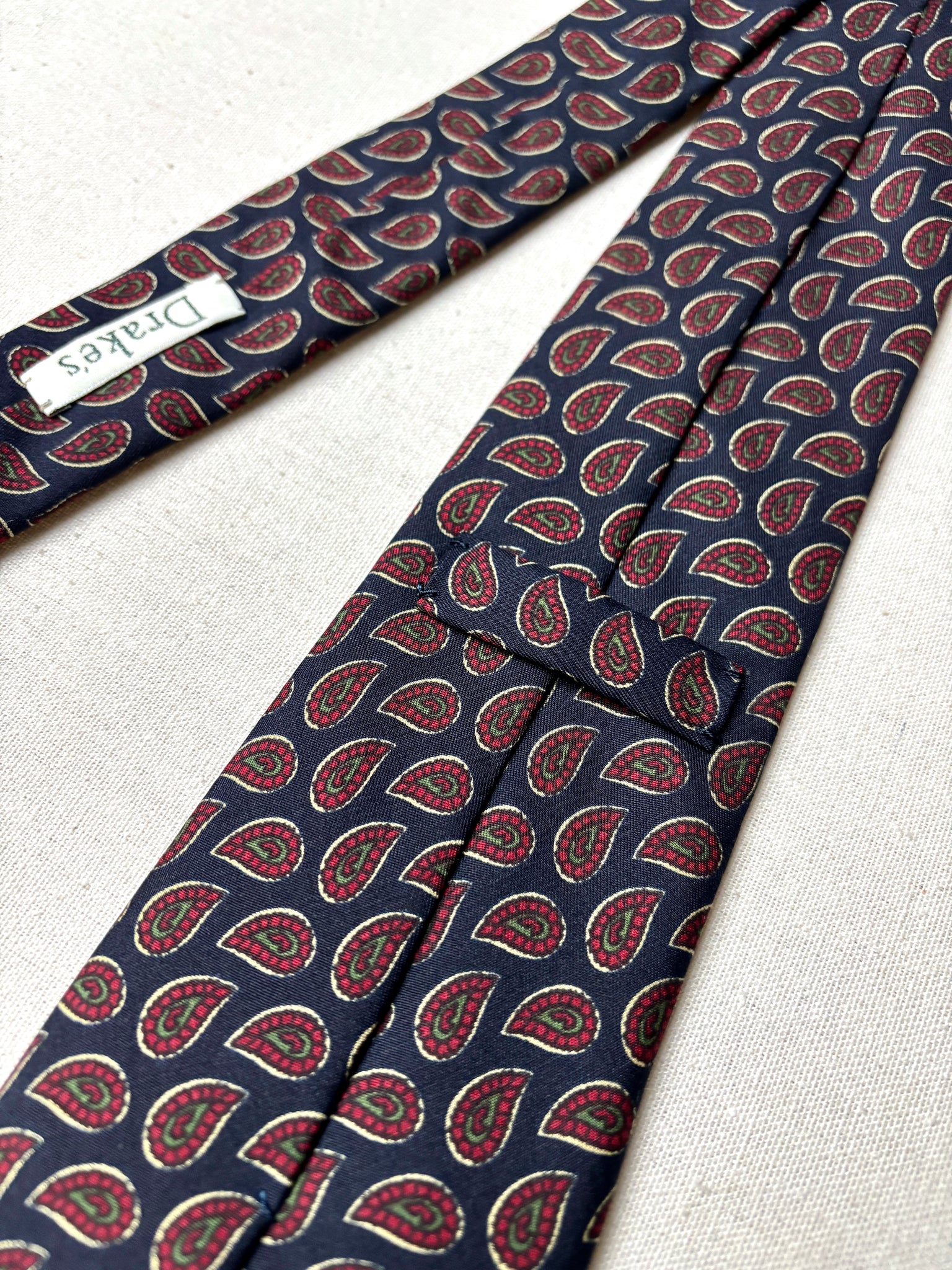 Superbe cravate en soie à motif paisley de la maison Drake's, fabriquée en Angleterre.