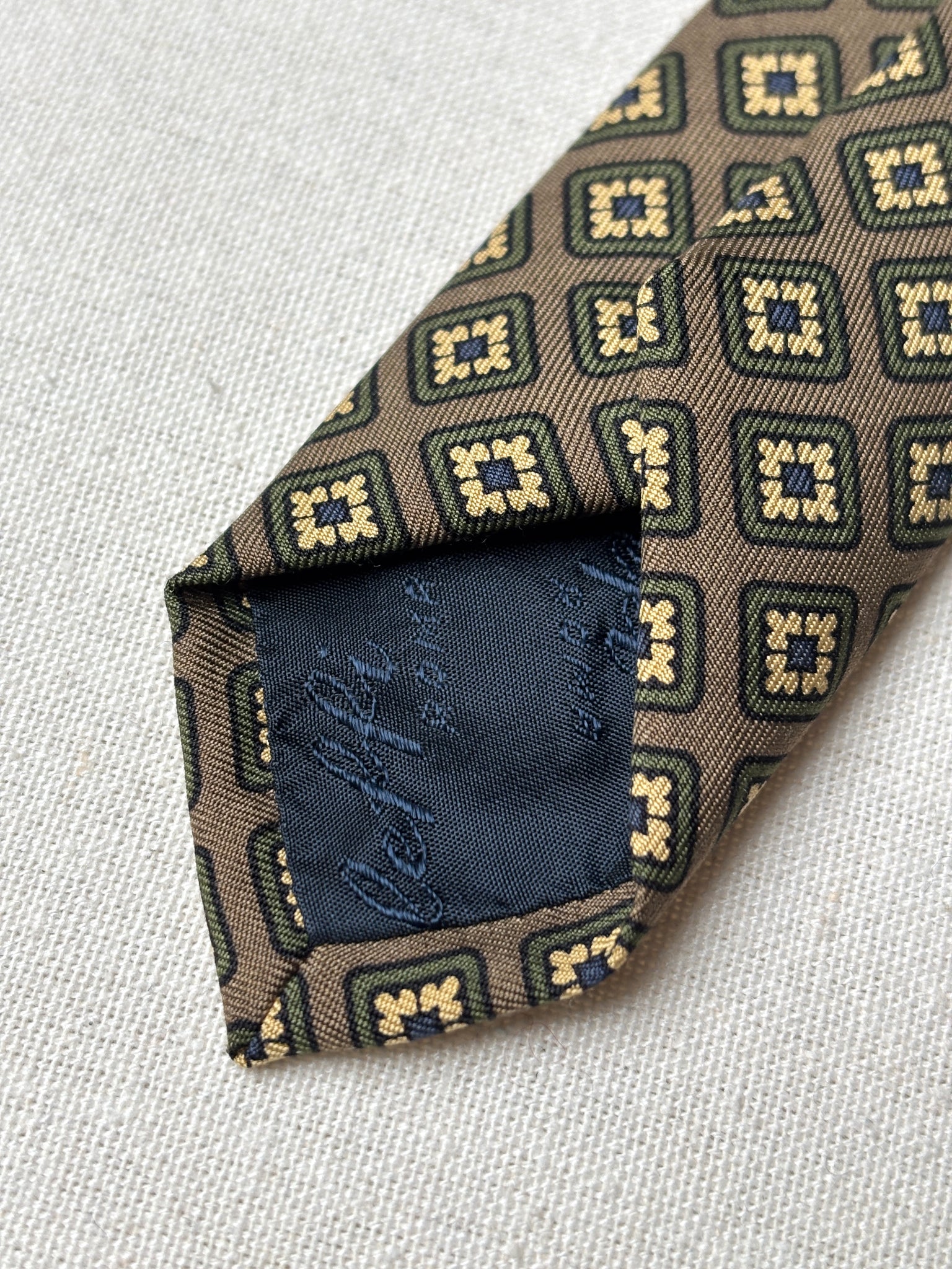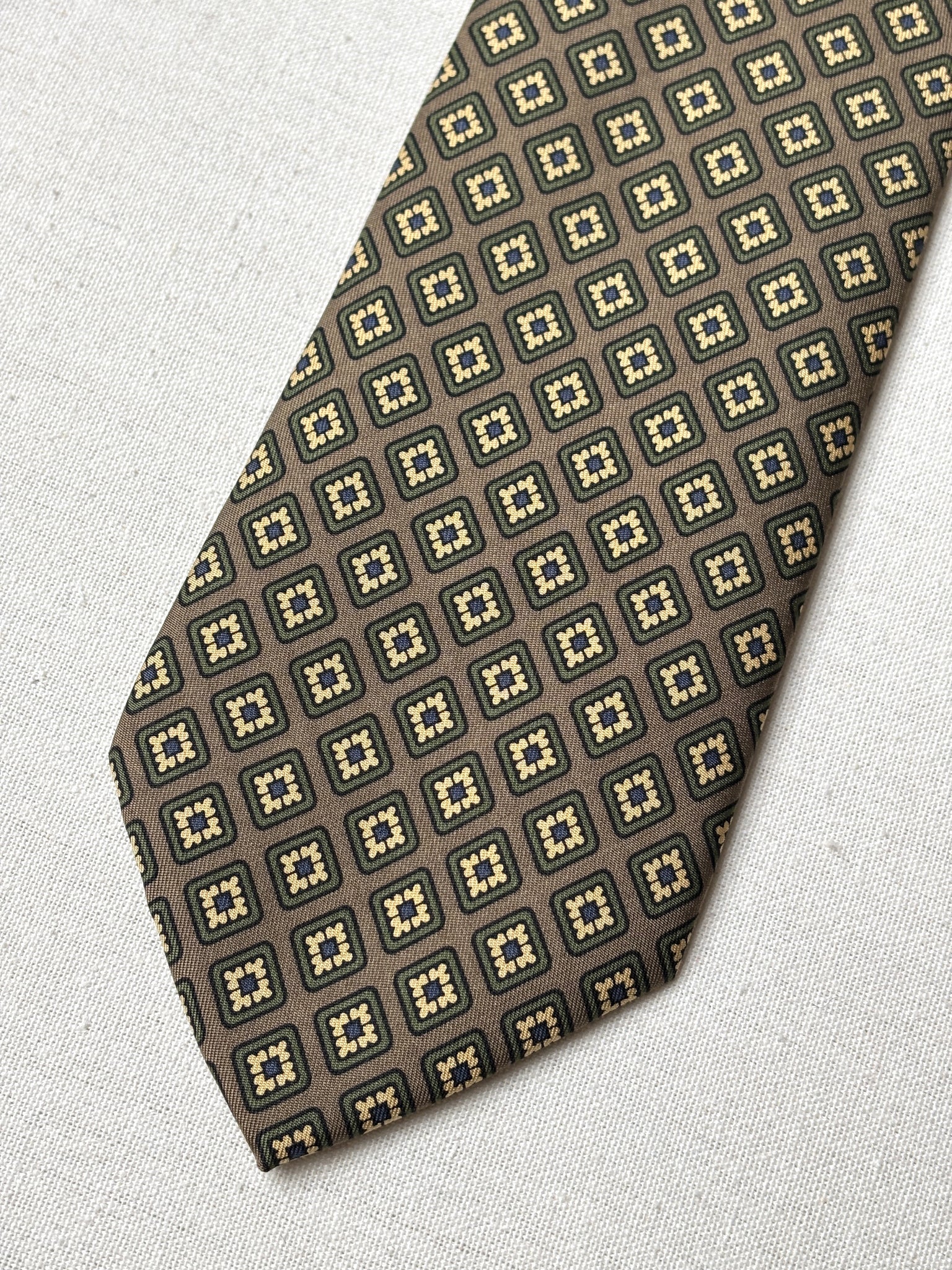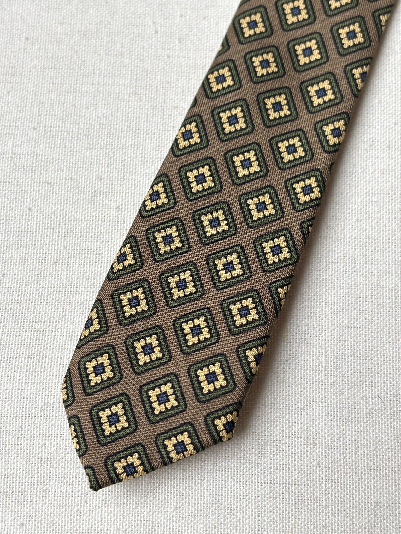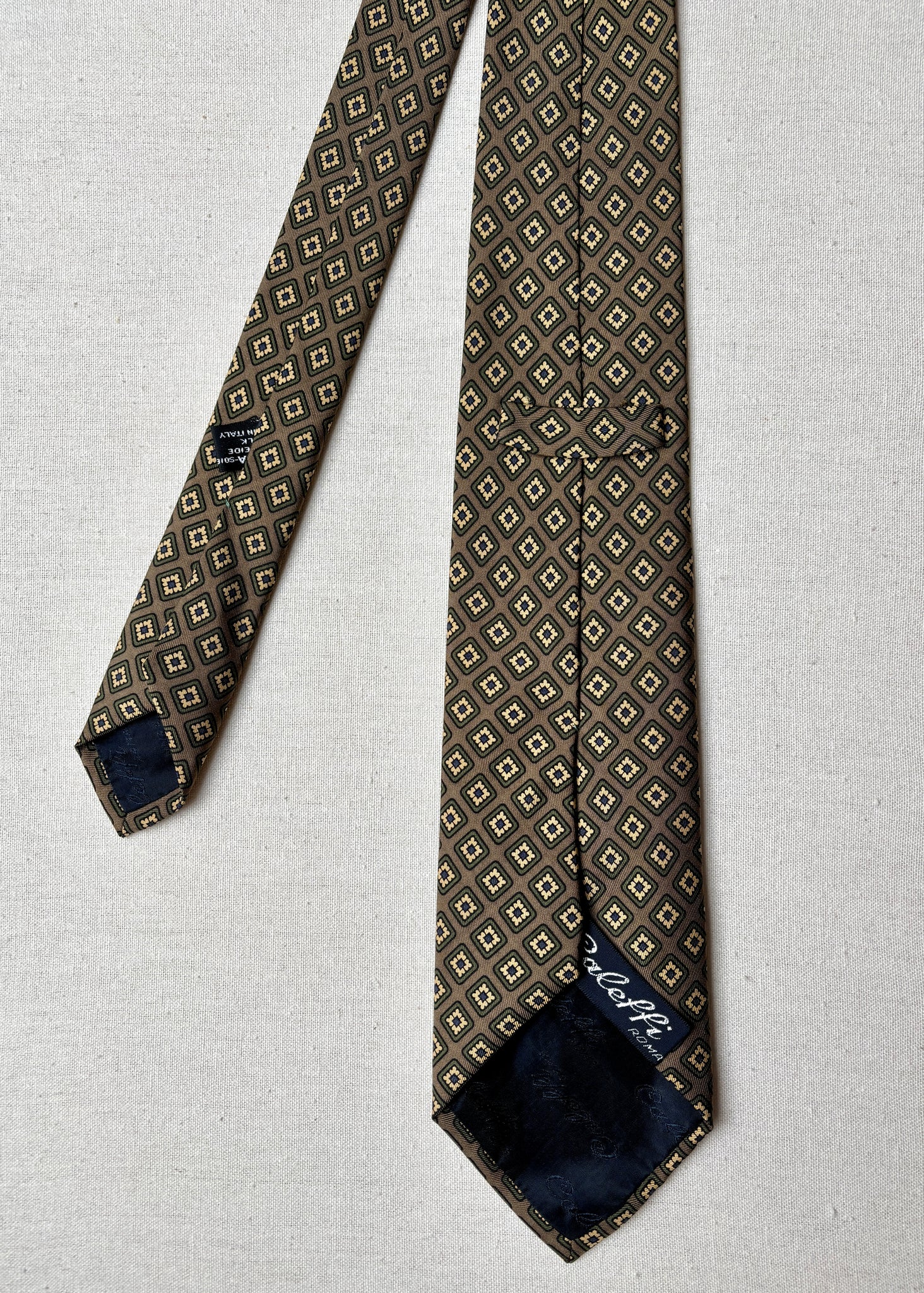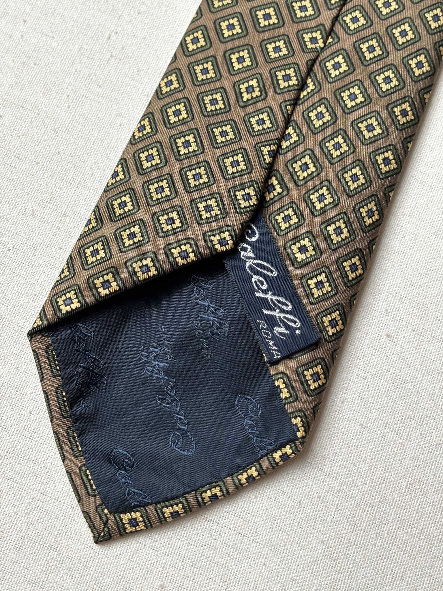 Jolie cravate en soie à motif géométrique  de la maison Caleffi Roma, fabriquée en Italie.