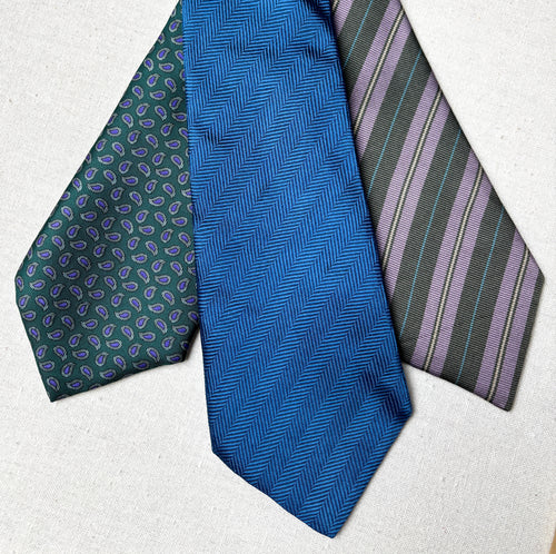 Trio de cravates vintage en soie Cravats of London / Glans X Bardelli / Viyella X Michelsons