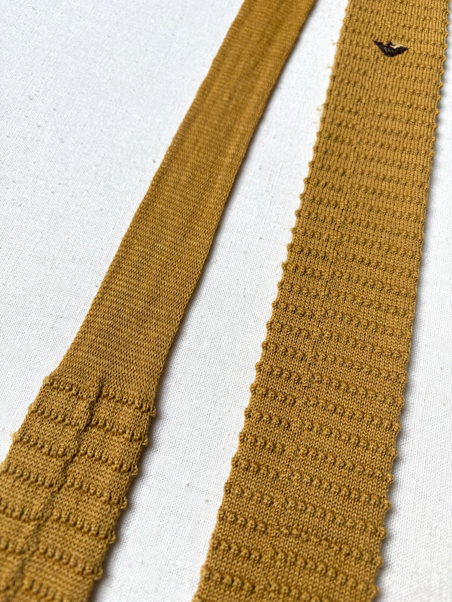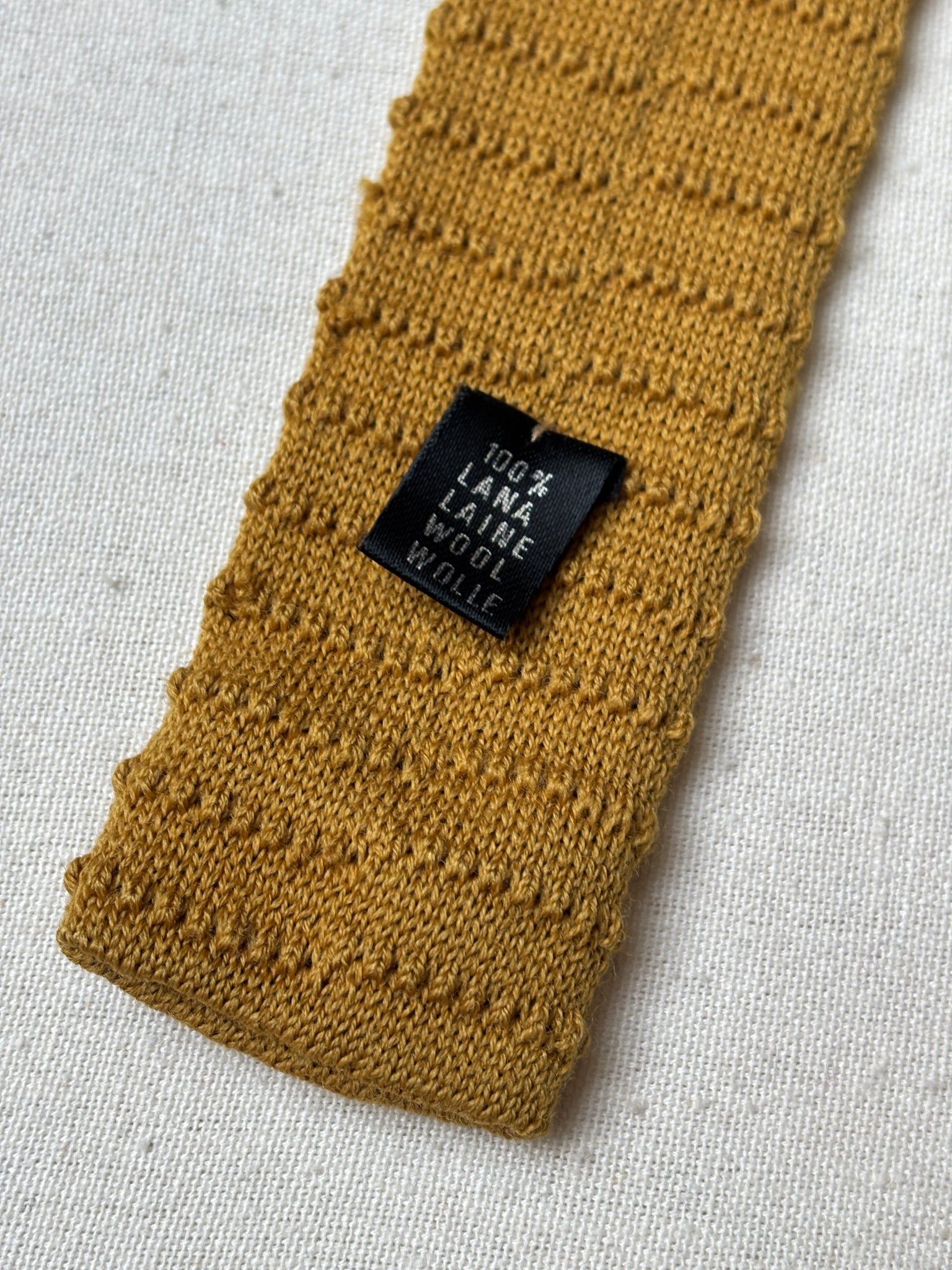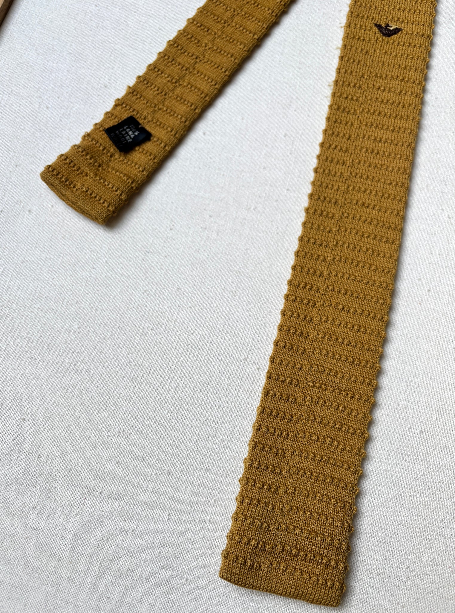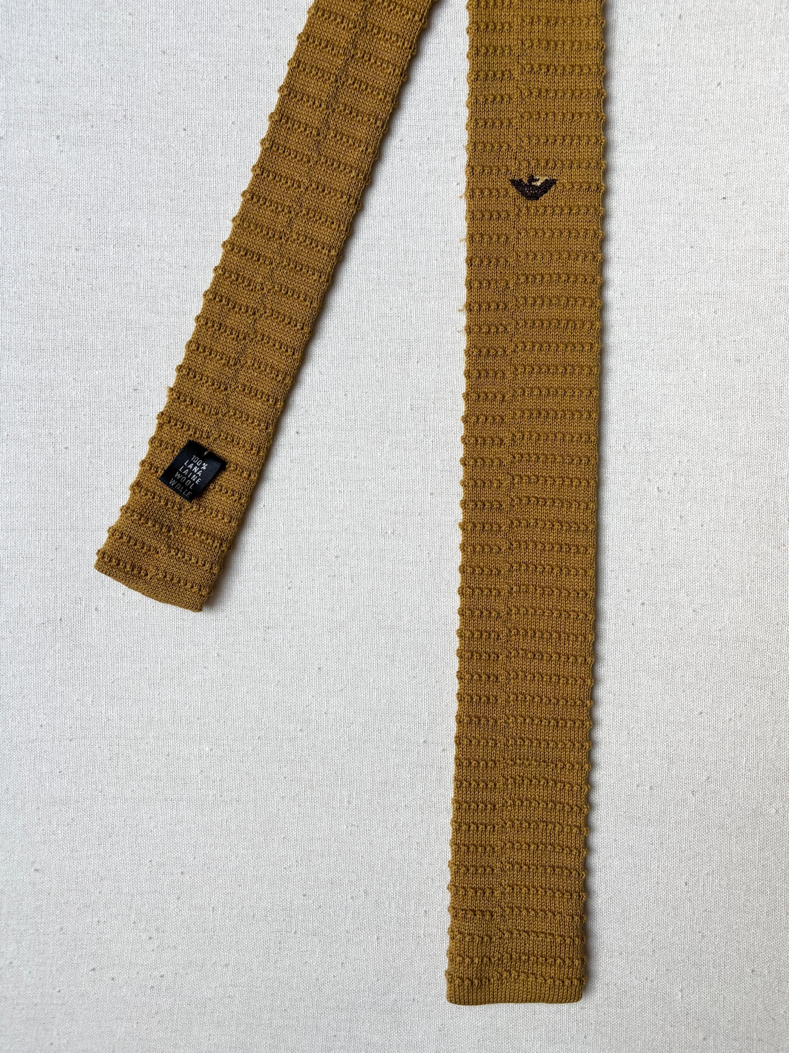 Armani cravate tricot vintage moutarde Made in Italy