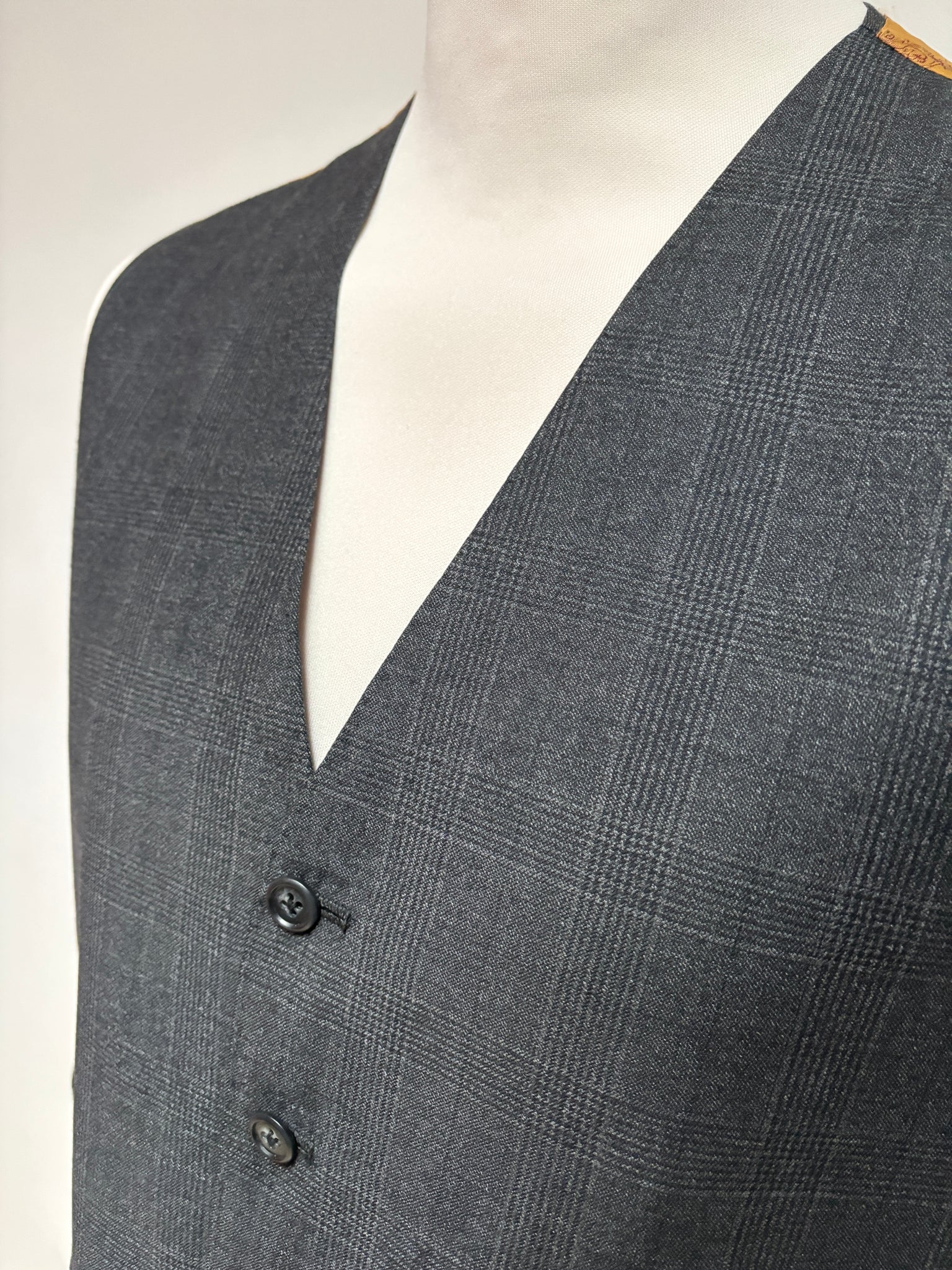 Joli gilet de costume vintage en laine mélangée à carreaux fenêtre.