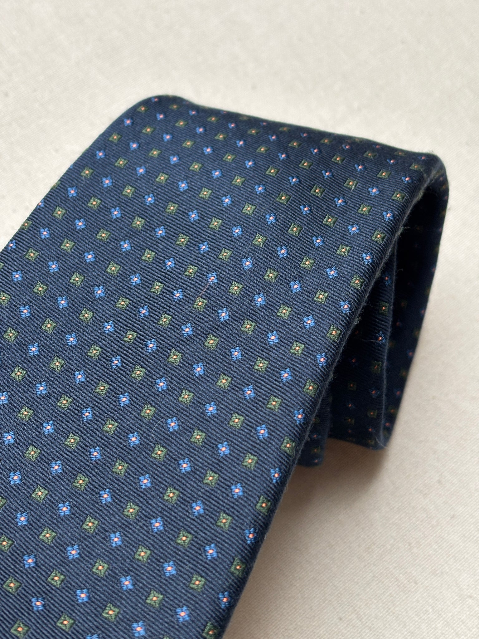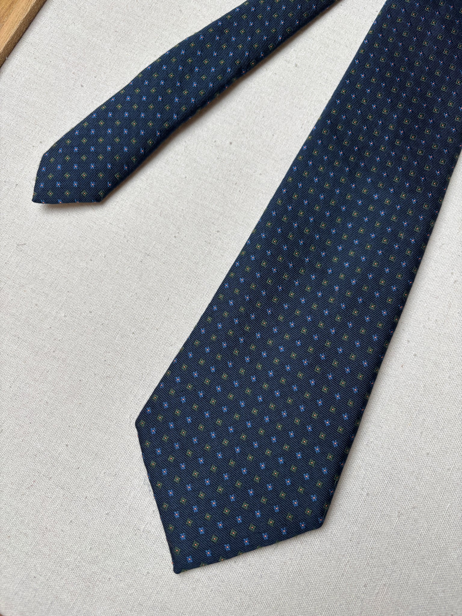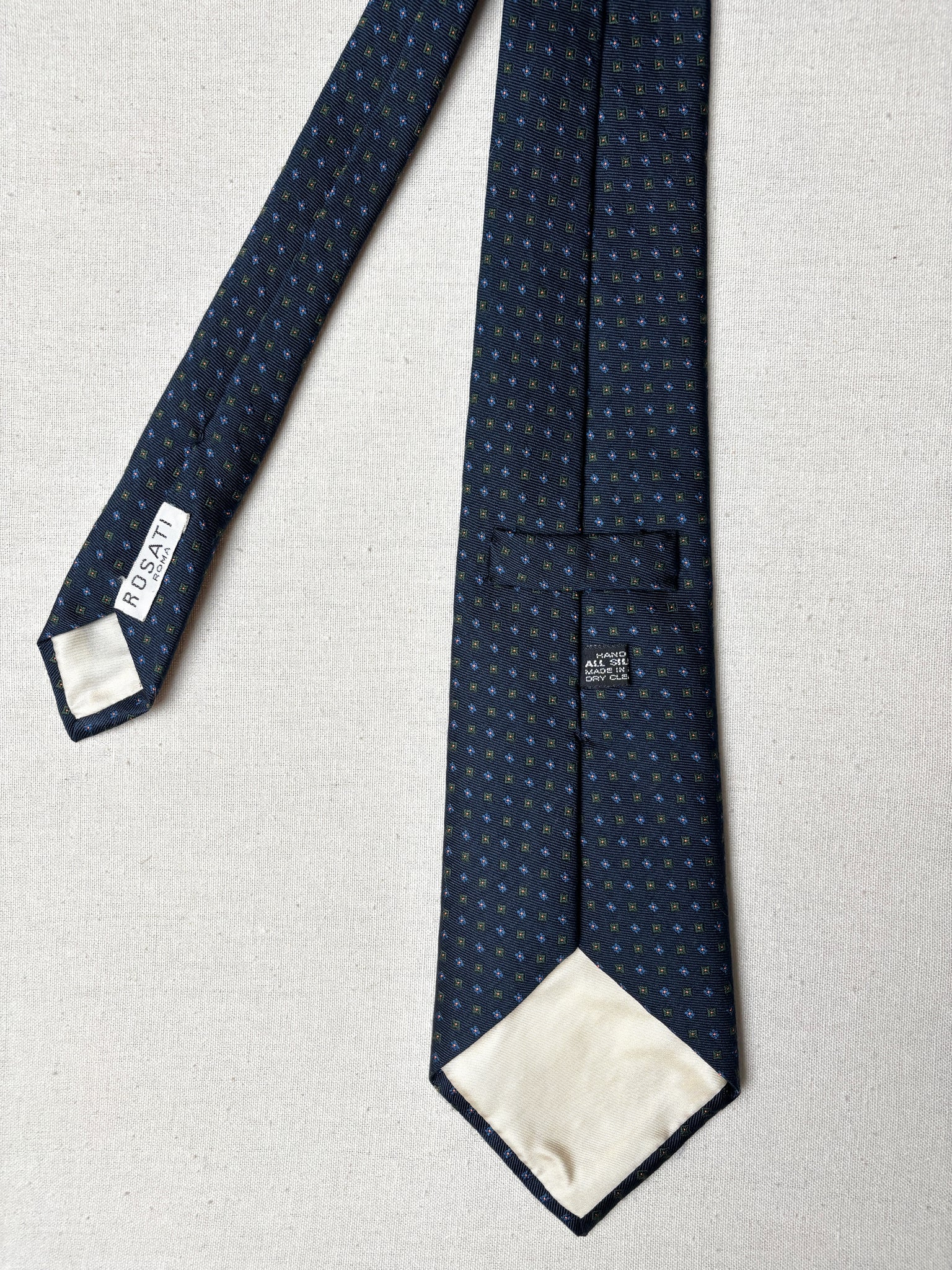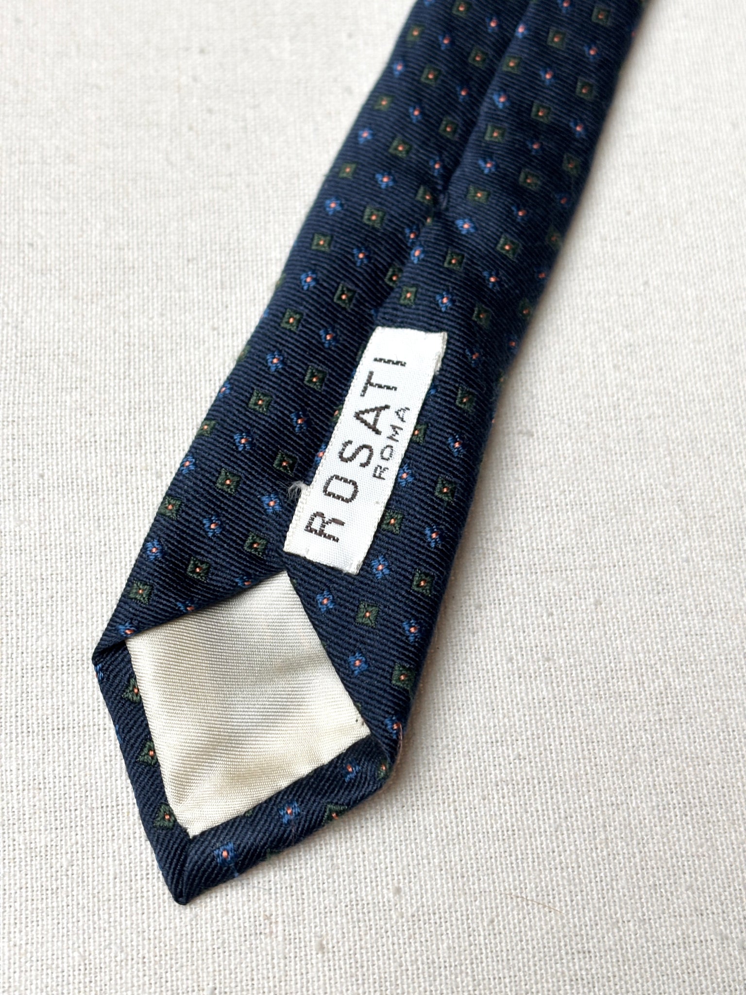 2/ Cravate en soie marine de la maison Rosati Roma, fabriquée en Angleterre