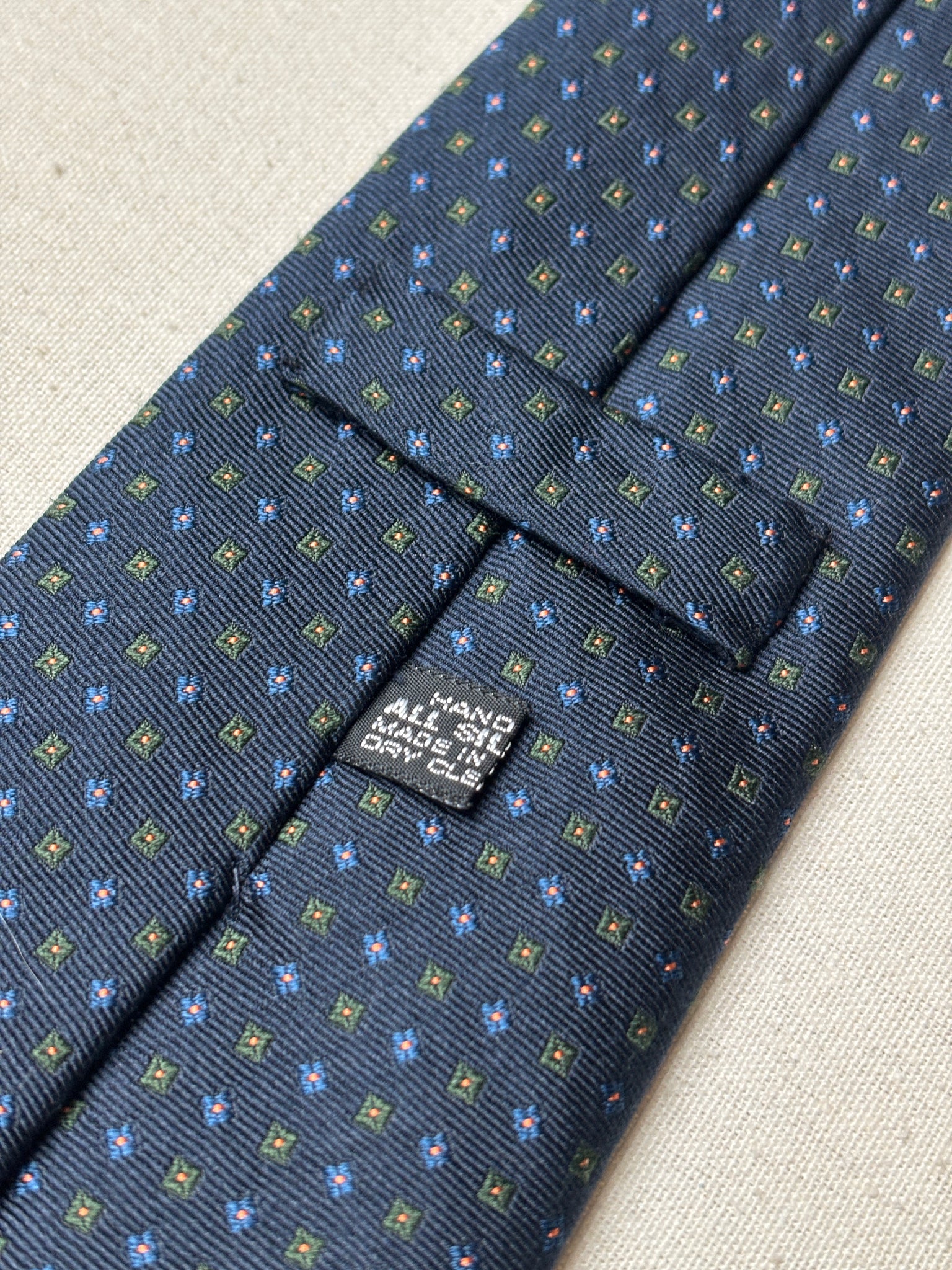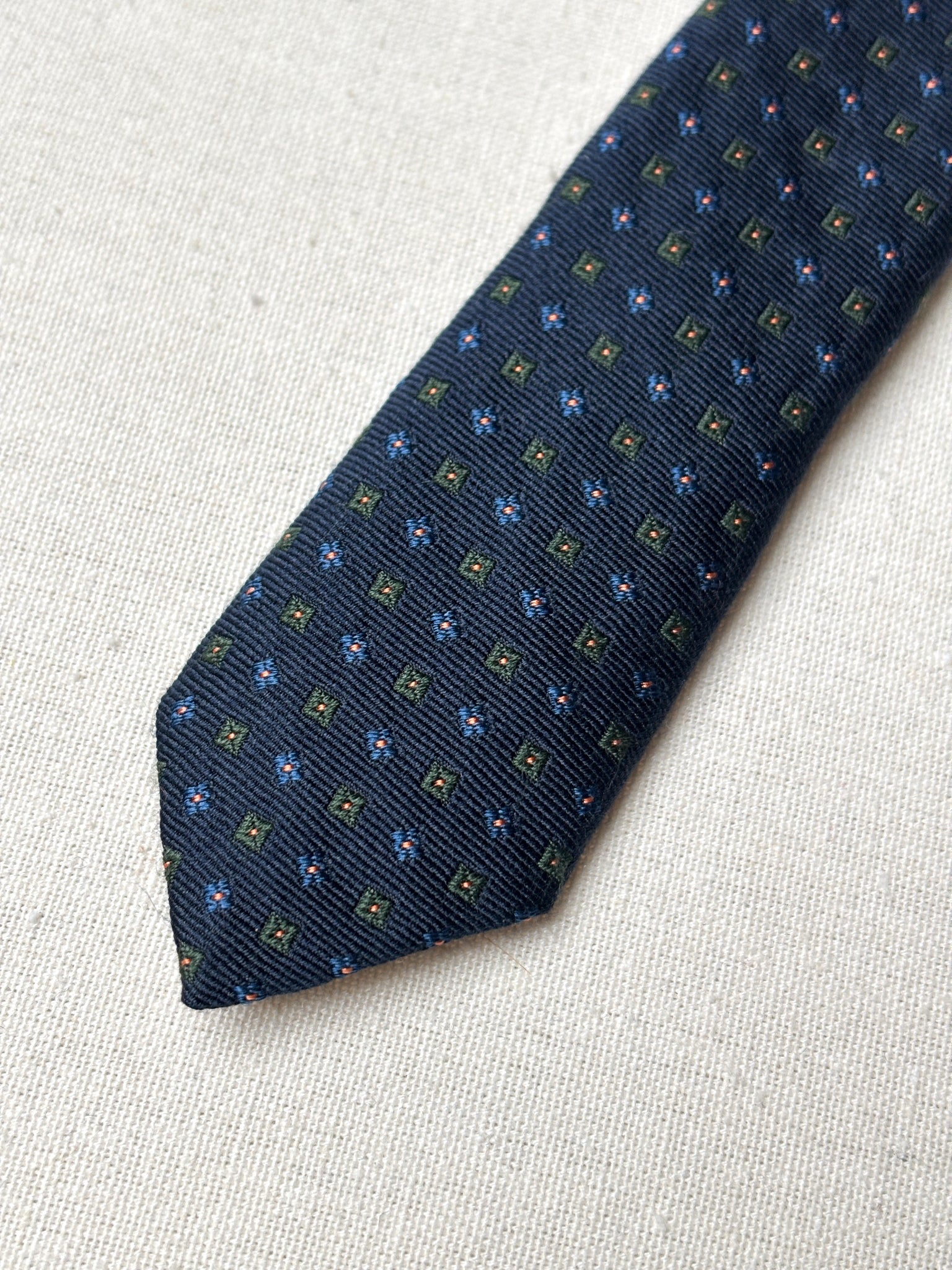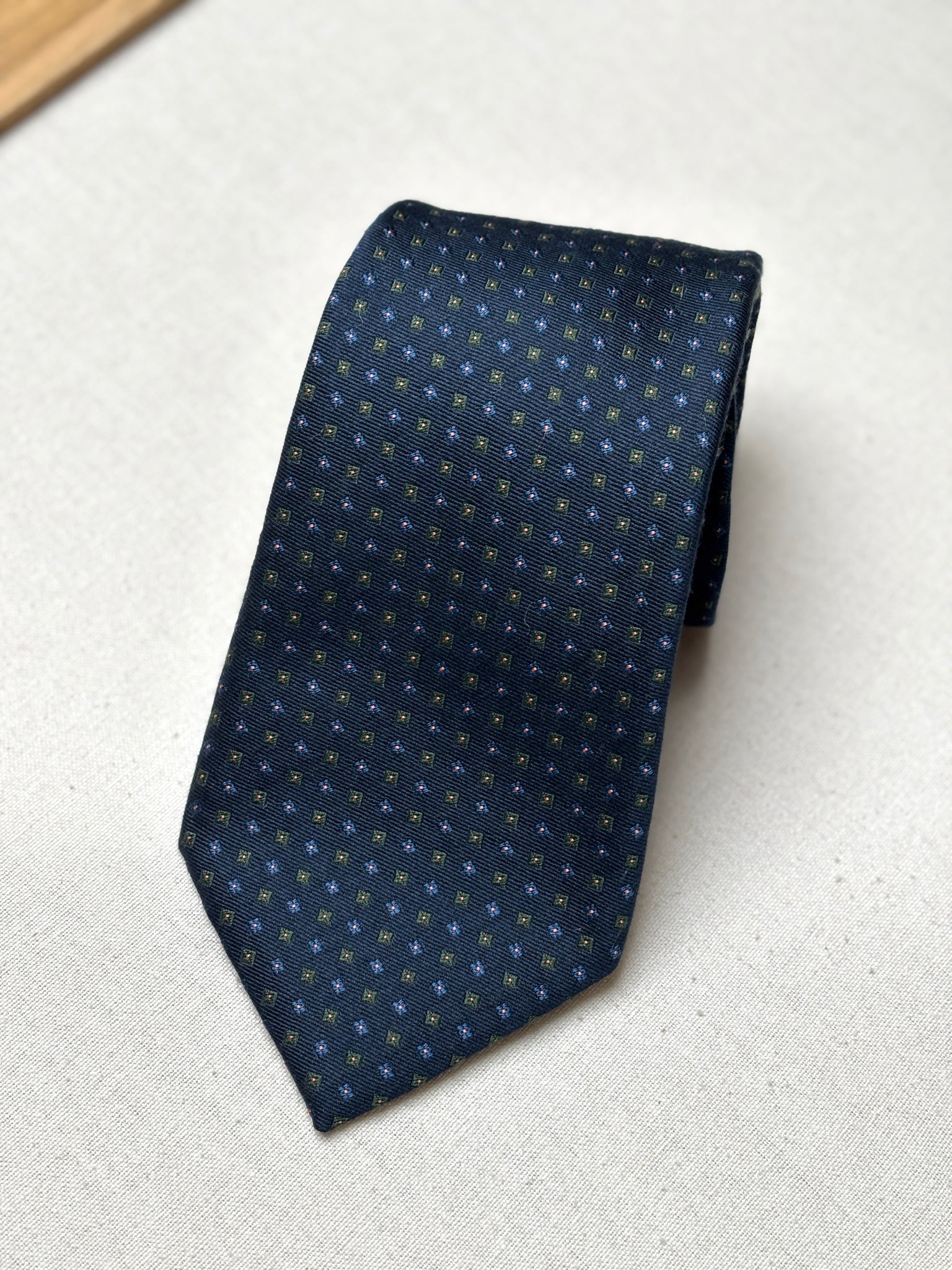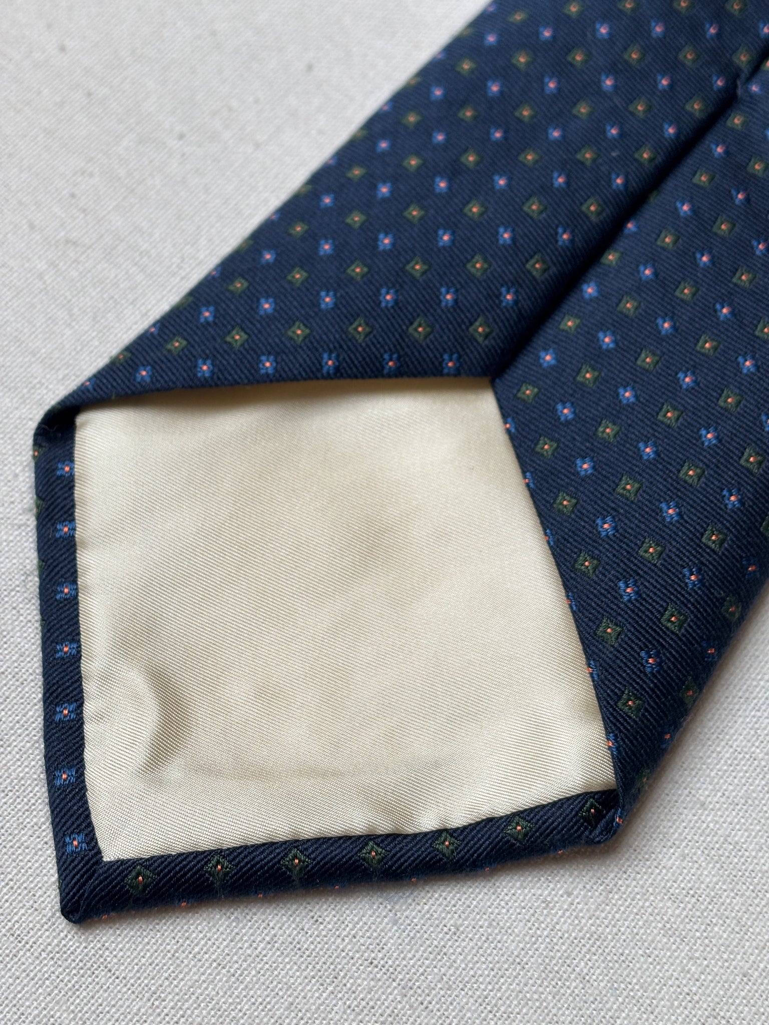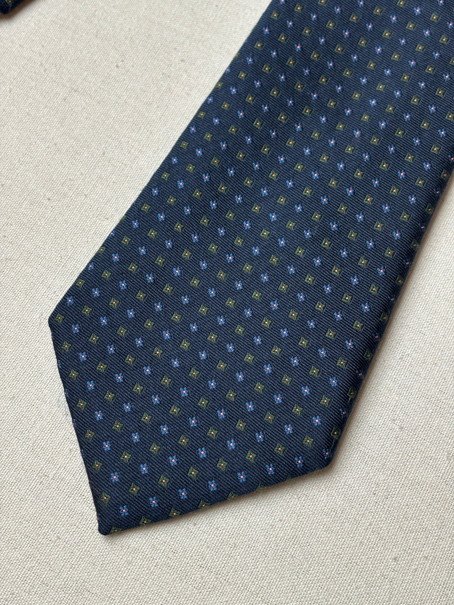 2/ Cravate en soie marine de la maison Rosati Roma, fabriquée en Angleterre