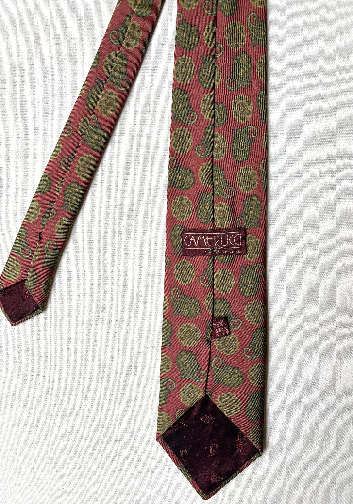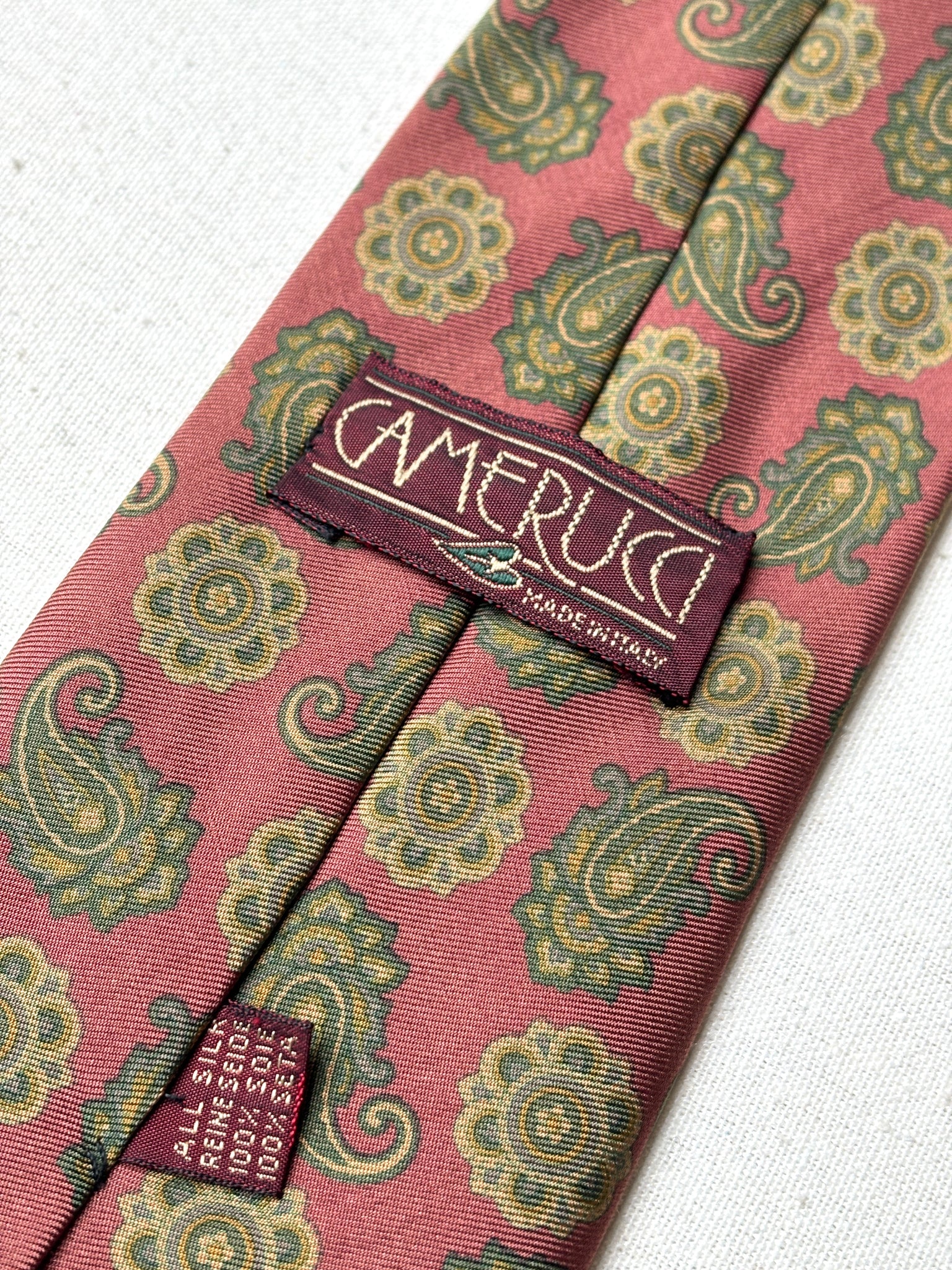 1/ Cravate en soie vintage de la maison Camerucci, fabriquée en Italie.