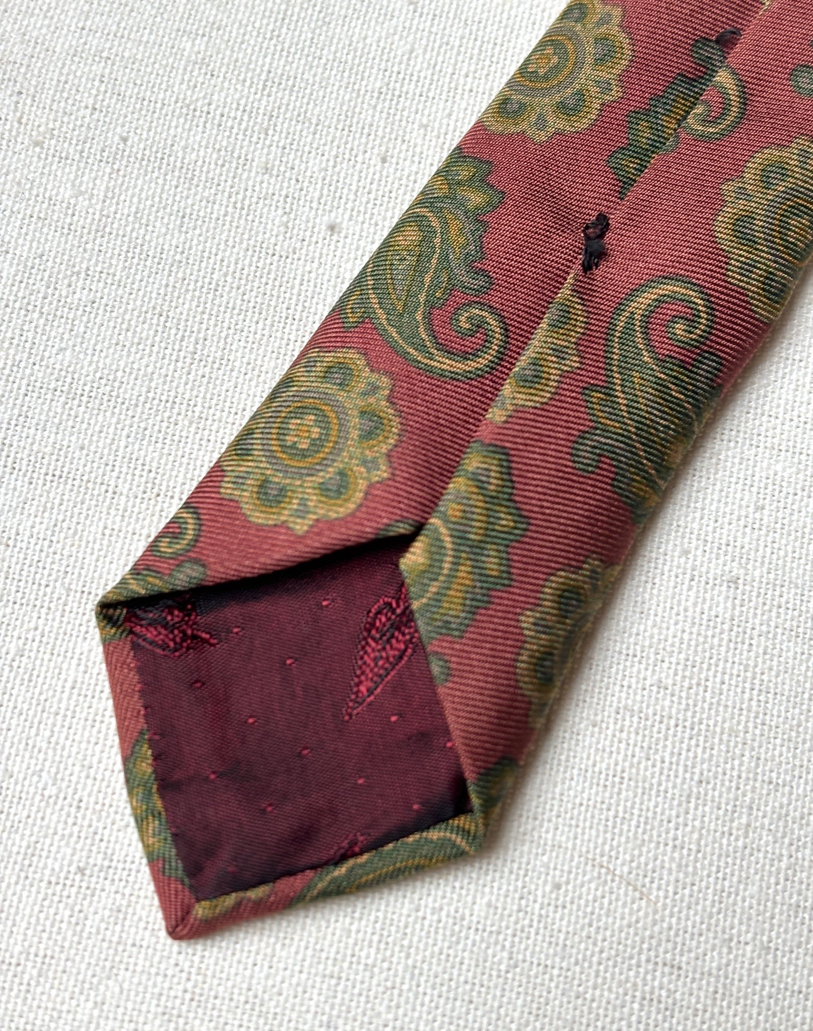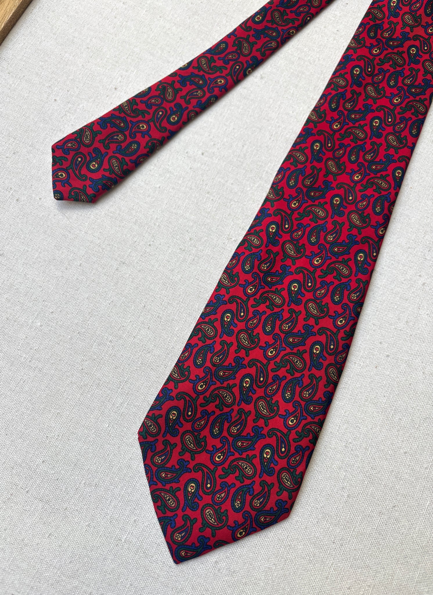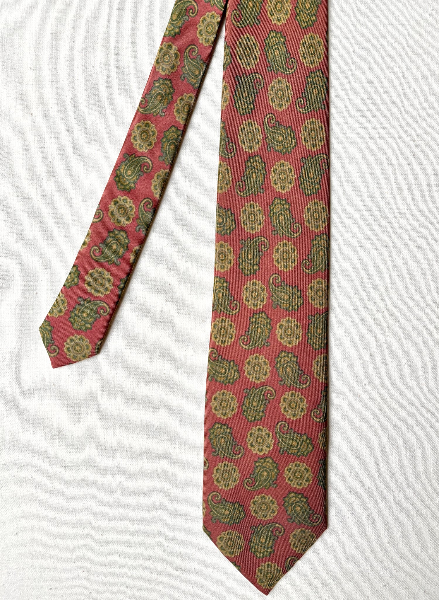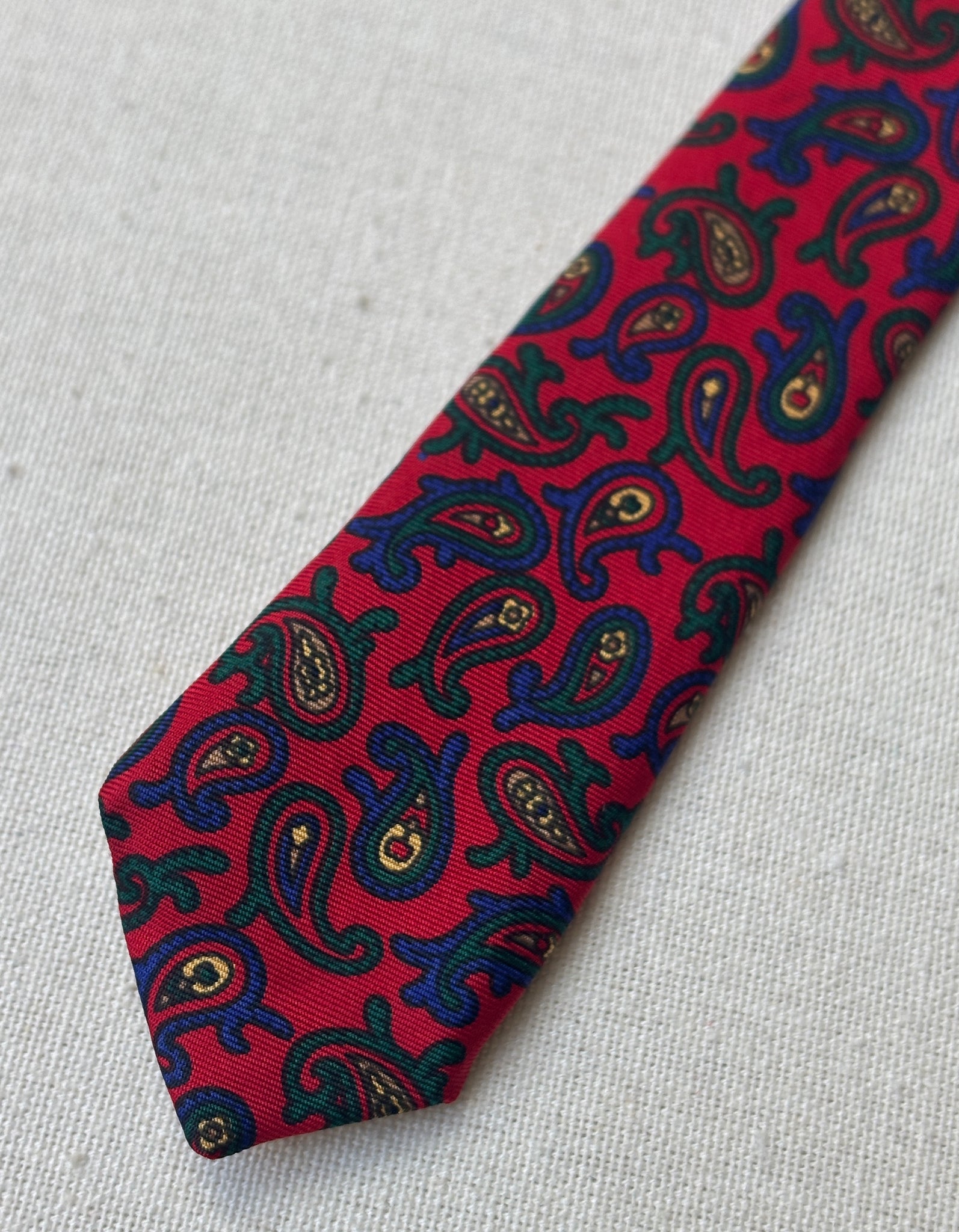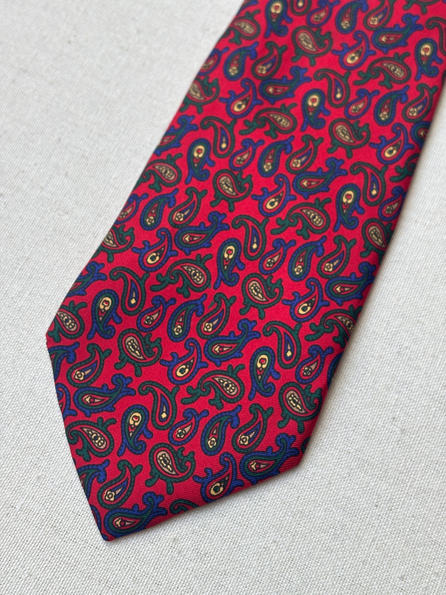 3/ Cravate rouge en soie à motif paisley, griffée Paolo di Quinto, fabriquée en Italie.
