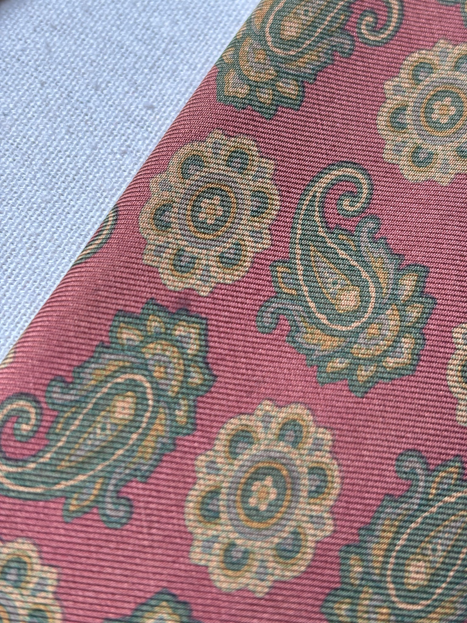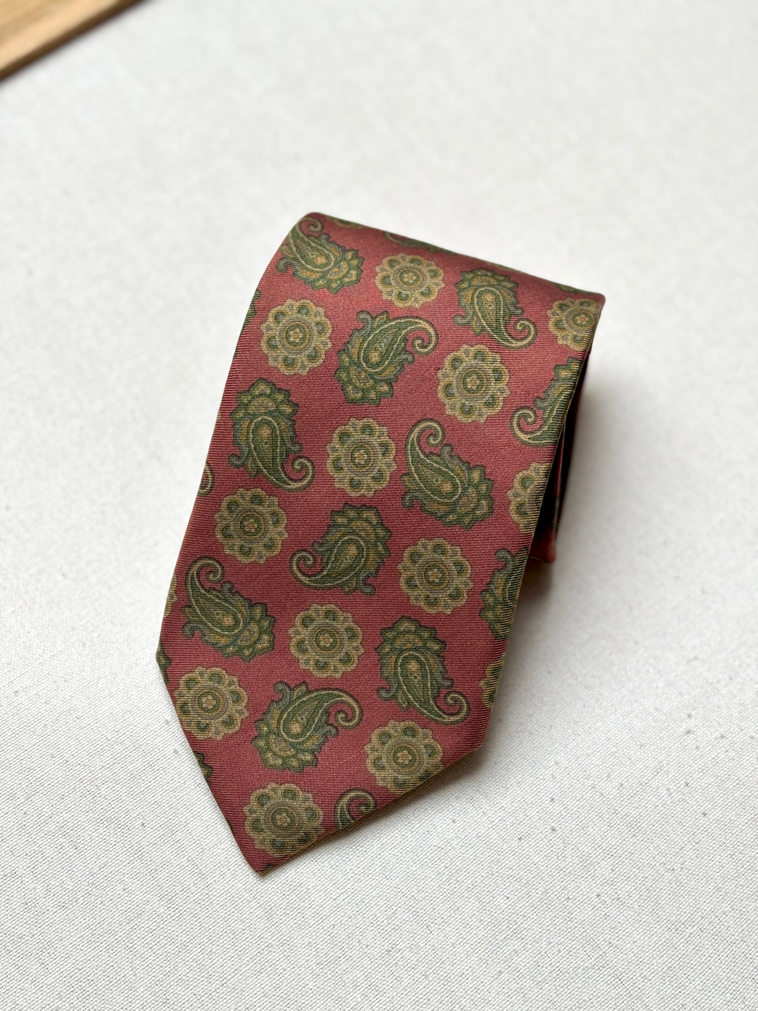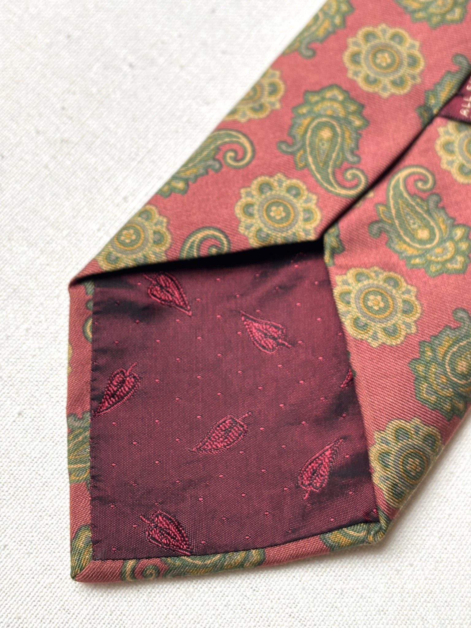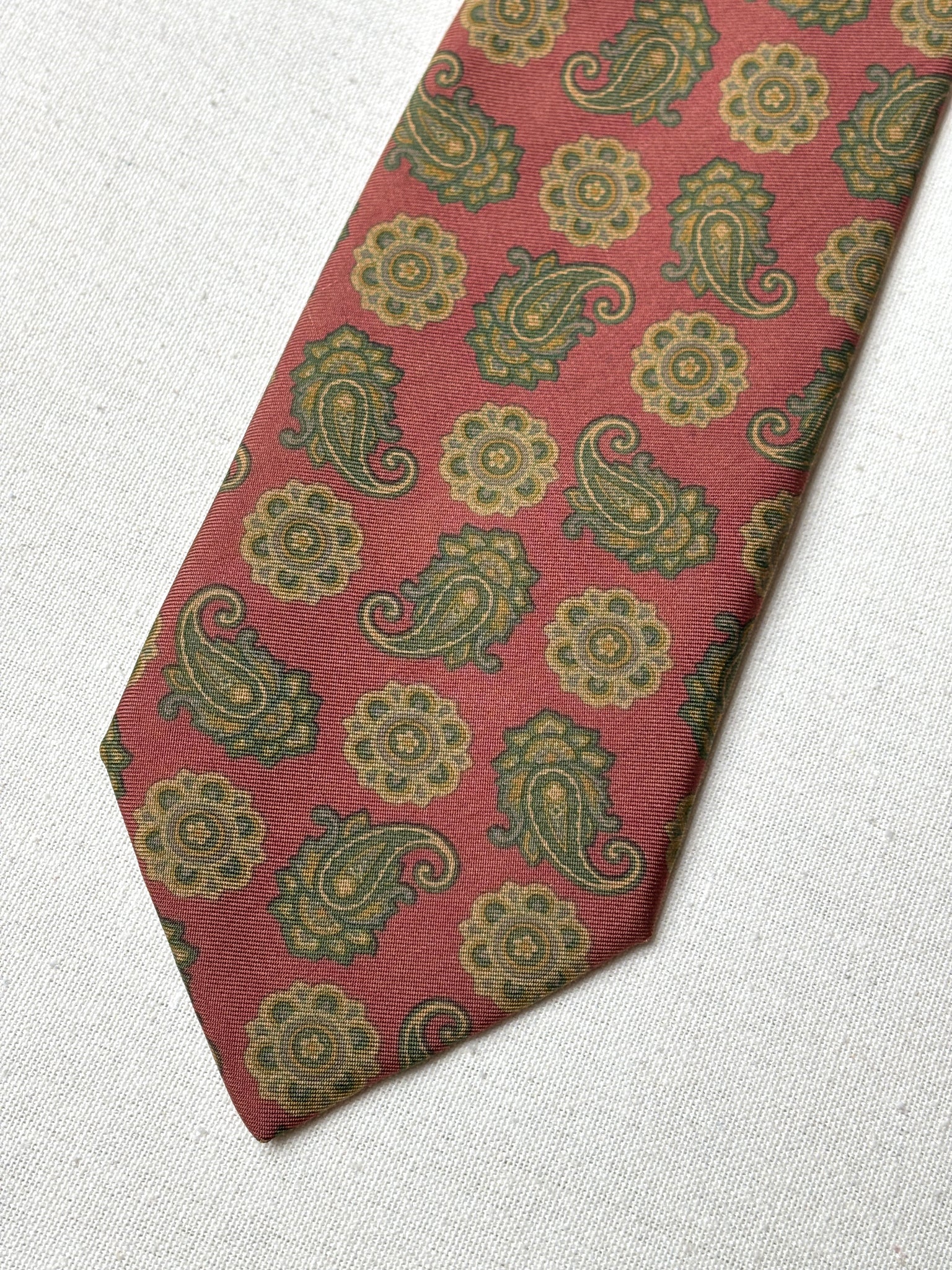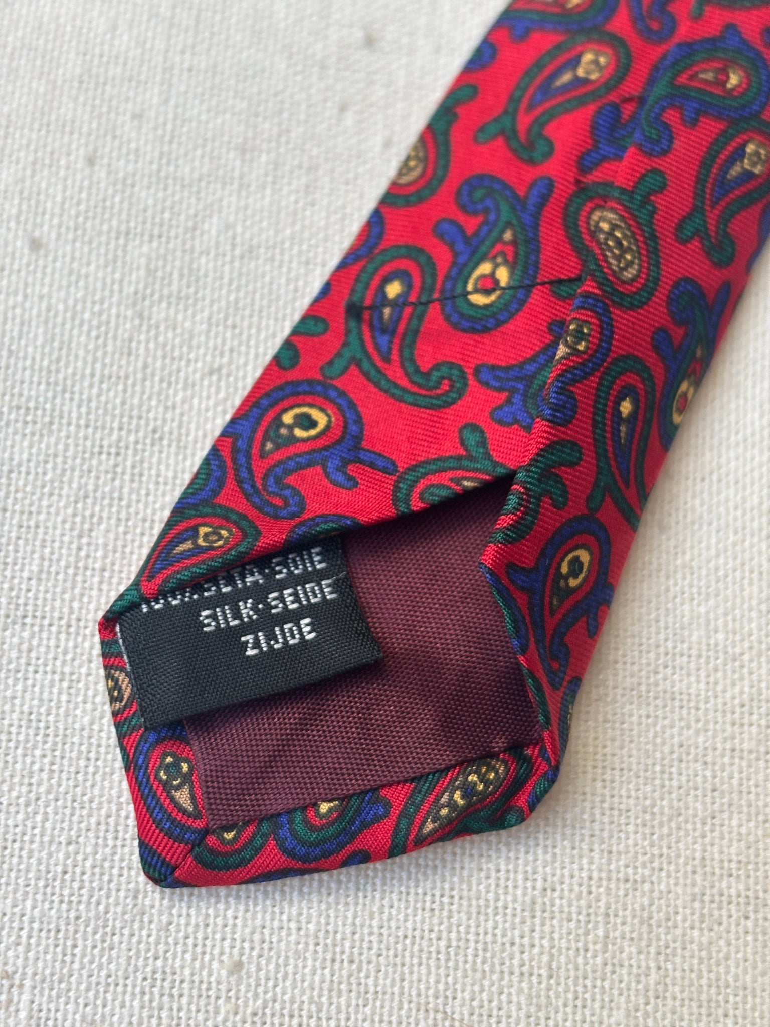 3/ Cravate rouge en soie à motif paisley, griffée Paolo di Quinto, fabriquée en Italie.