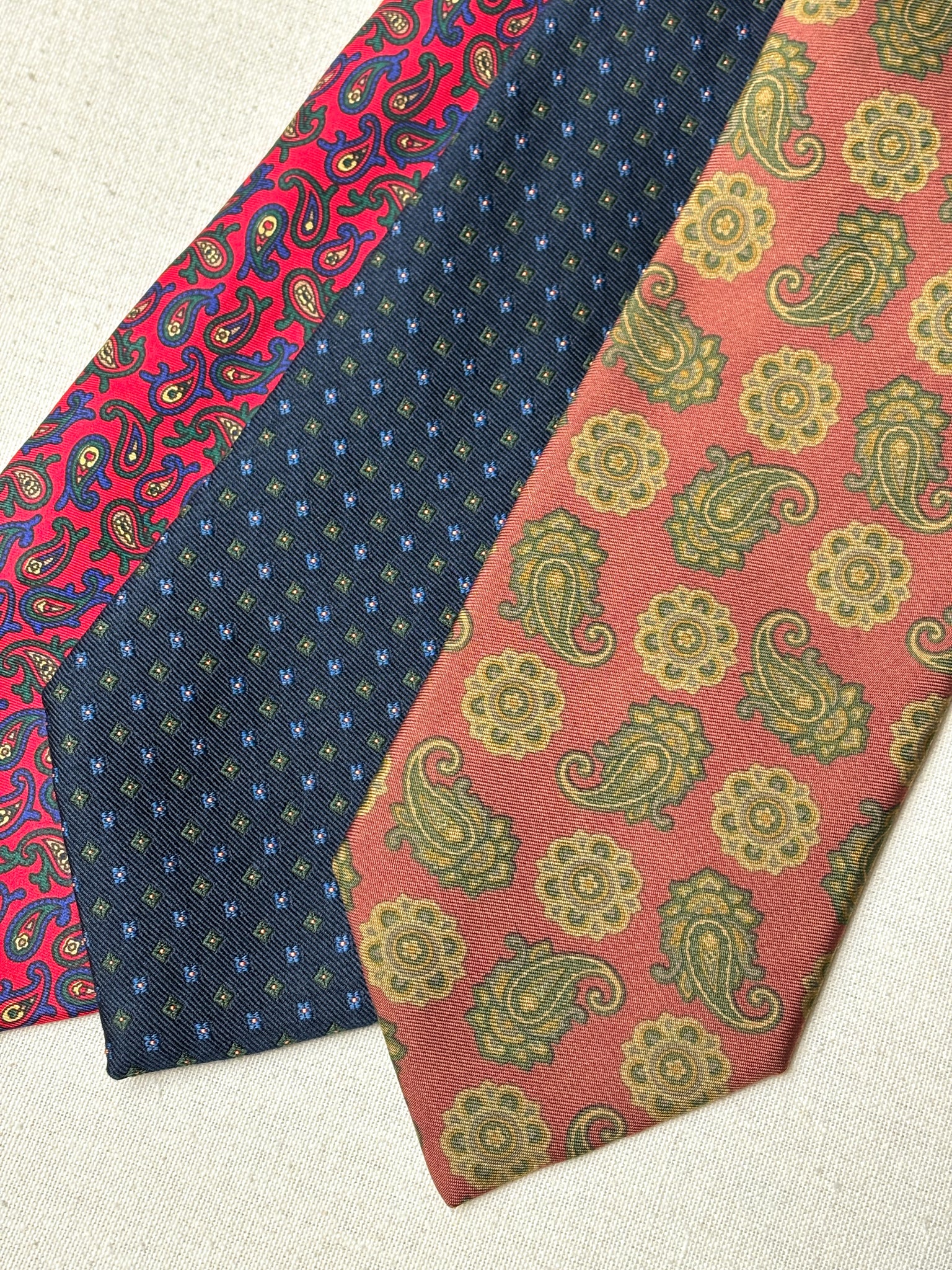 Trio de cravates vintage en soie Camerucci / Rosati Roma / Paolo di Quinto