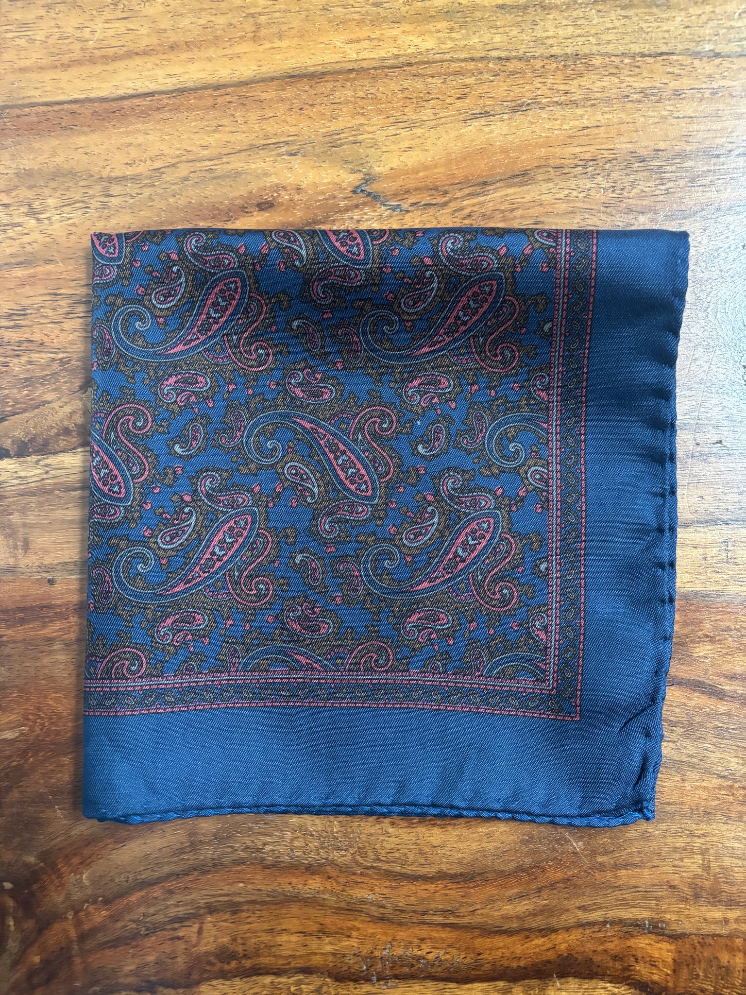 3/ Pochette paisley rose et bleue en soie, fabriquée en Italie